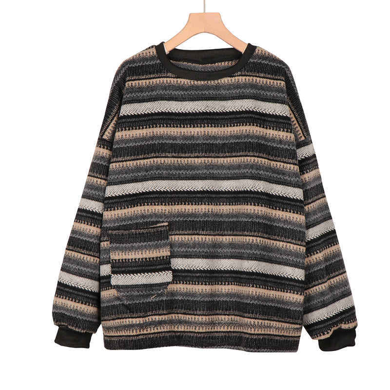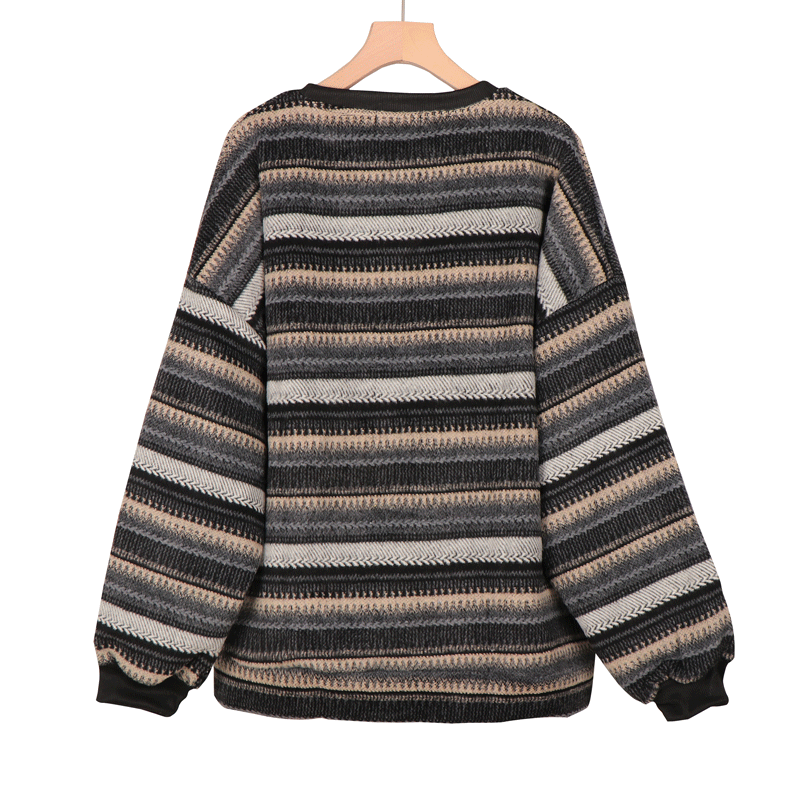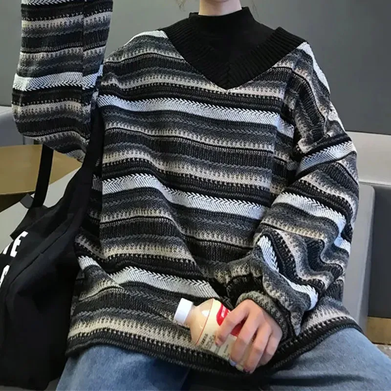 Knitted Sweaters Women Oversized V Neck Striped Pullover Vintage Sweater Autumn Winter Retro Warm Jumper Harajuku Loose Sweater