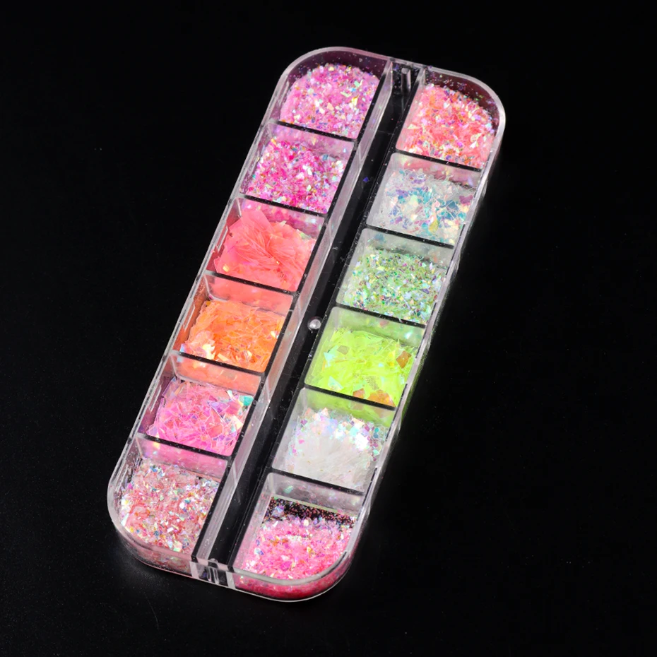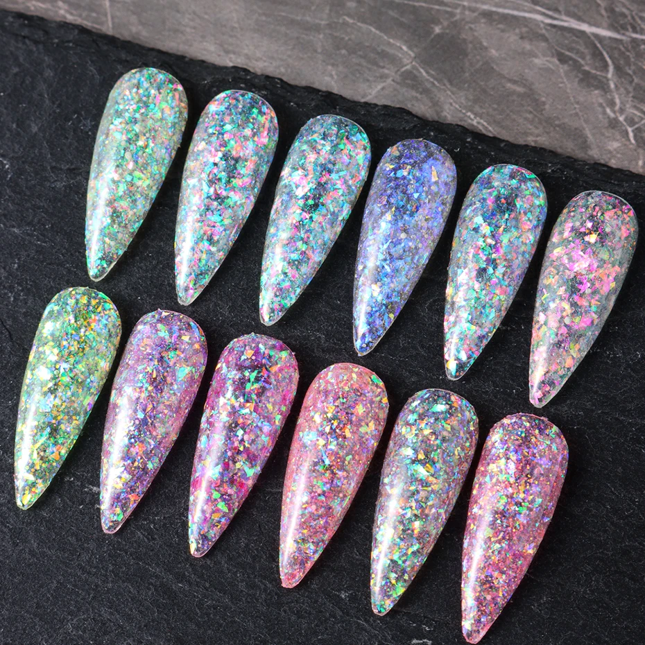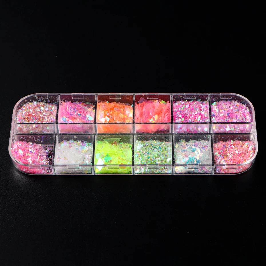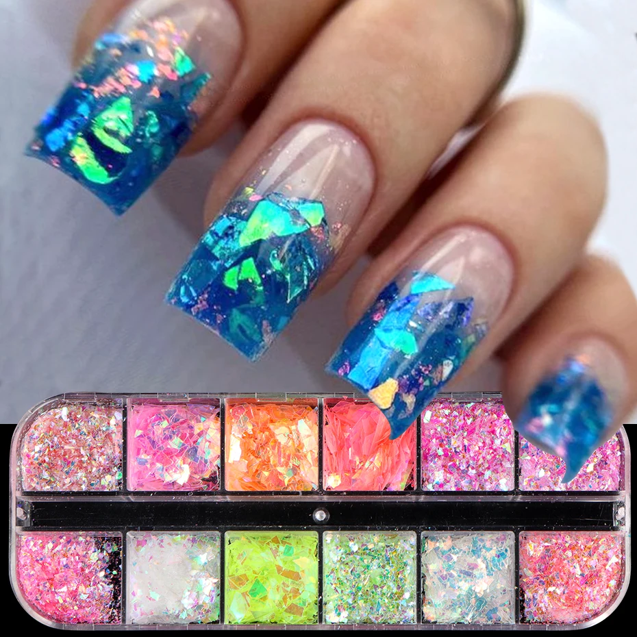 12 Grids Aurora Chameleon Nail Glitter Flakes Irregular Crystal Glass Sequins Powder Shiny Mermaid Paillette Nail Art Decoration
