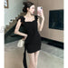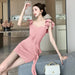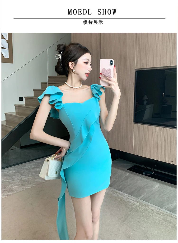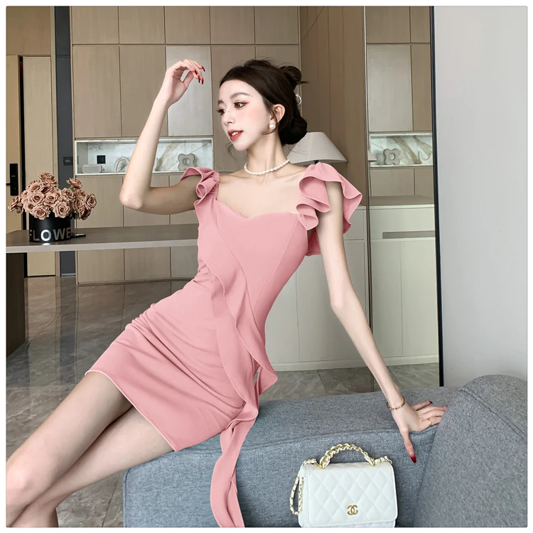 Summer New Women's Retro Sweet Gauze Fragmented Waist retraction Slim Fashion Pleated sling Wrap buttocks Mini Dress