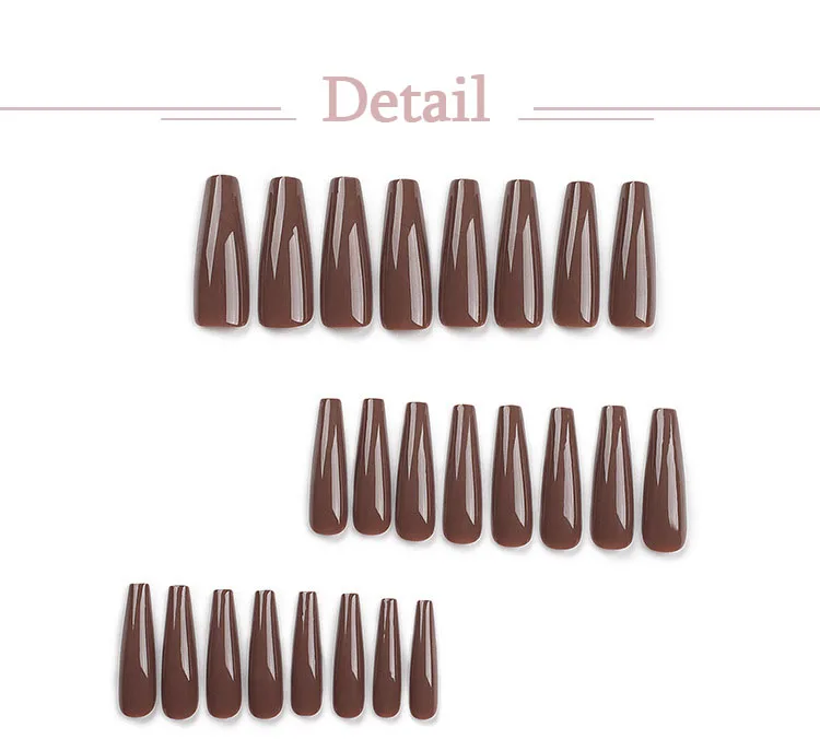 24Pcs Glossy Coffee Extral Long Ballet Fake Nails Fashion Solid Color Detachable Finished False Nails Press on Nails with Glue