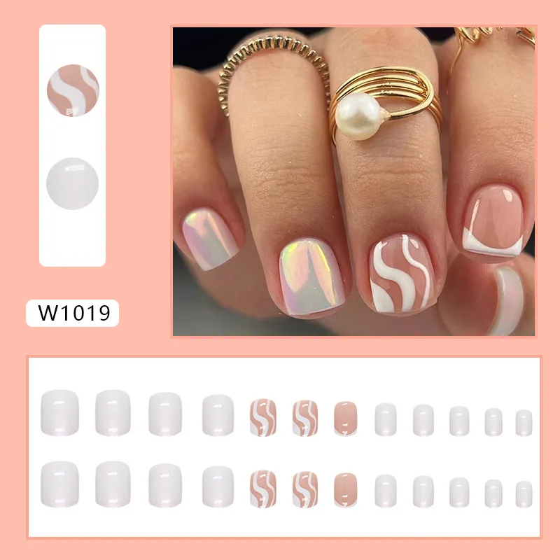 24Pcs Nail Aurora Glitter Fake Nails Short French Press on nails Simple False nail tips Full Cover Artificial Acrylic Nails Tips