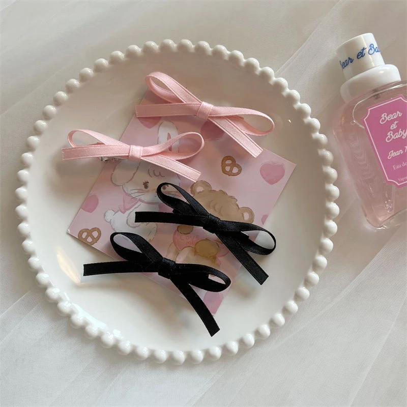 2Pcs Sweet Bowknot Hair Clips Ballet Ribbon Bow Hairpin Bang Clip Girls Mini Grab Clips Woman Headwear Hair Accessories