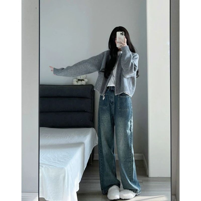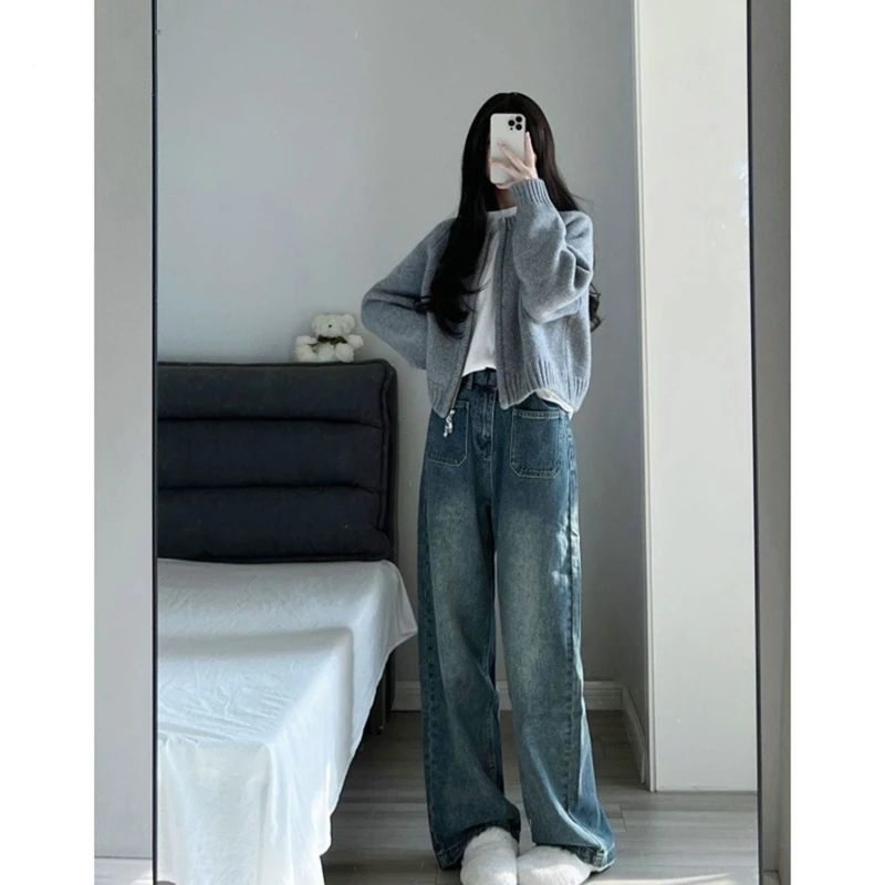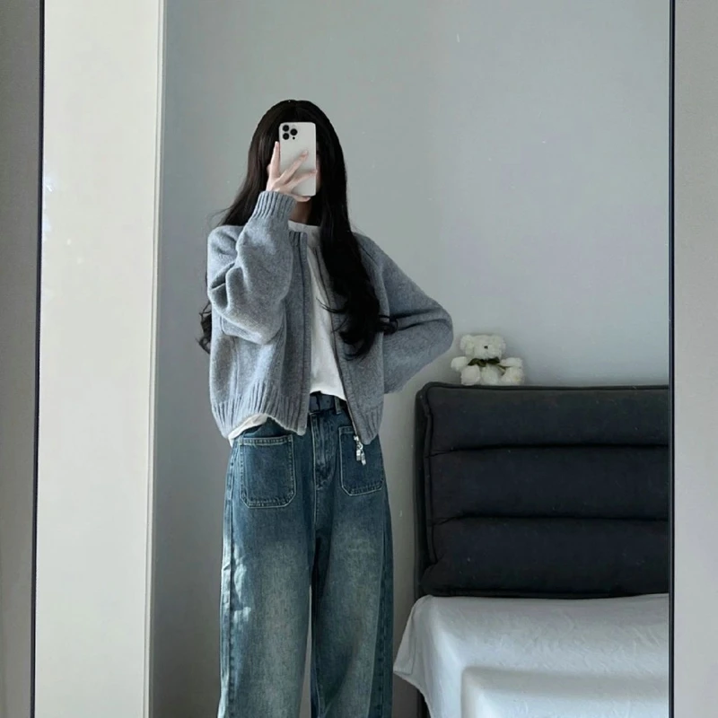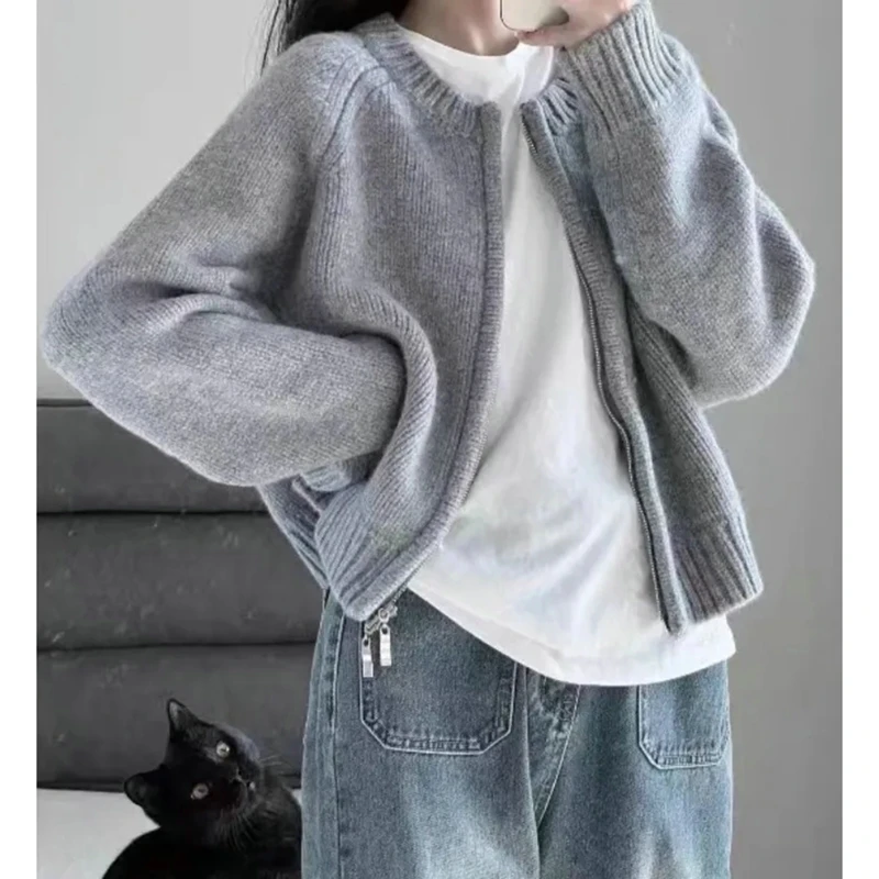 Features:Short Sweater Coat Women's Zipper Cardigan Long Sleeve Knitted Top