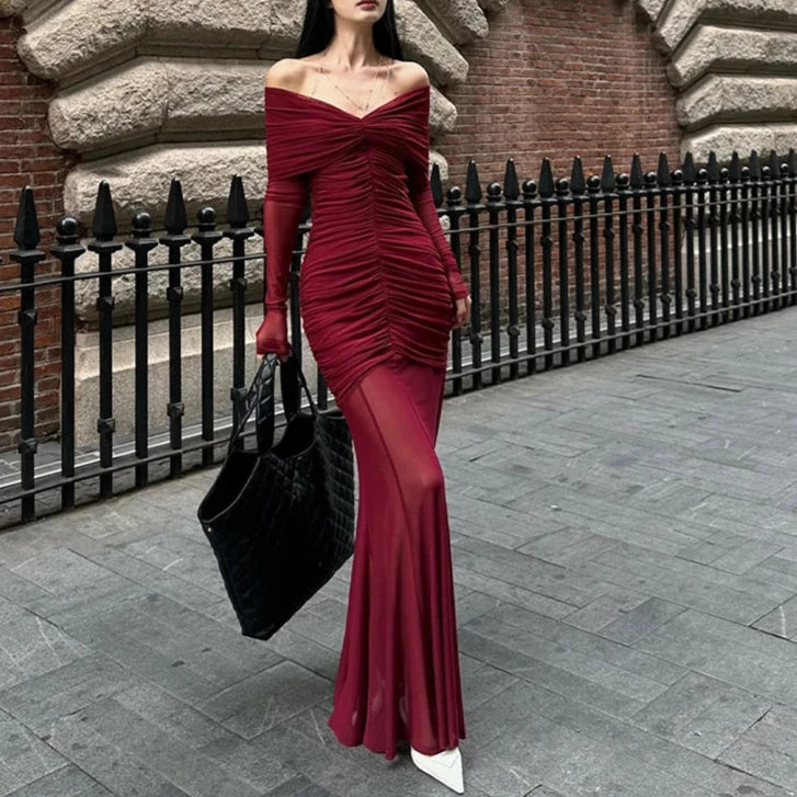 Model Number:Sexy V-neck Ruched Evening Dress Women