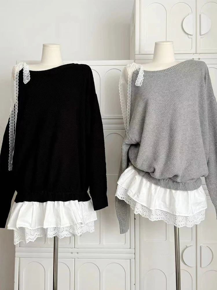 Autumn Winter Korean Fashion Ballet Core Mini Dress Women Long Sleeve Frock One-Piece 2000s Aesthetic Lace Grunge Y2k Streetwear