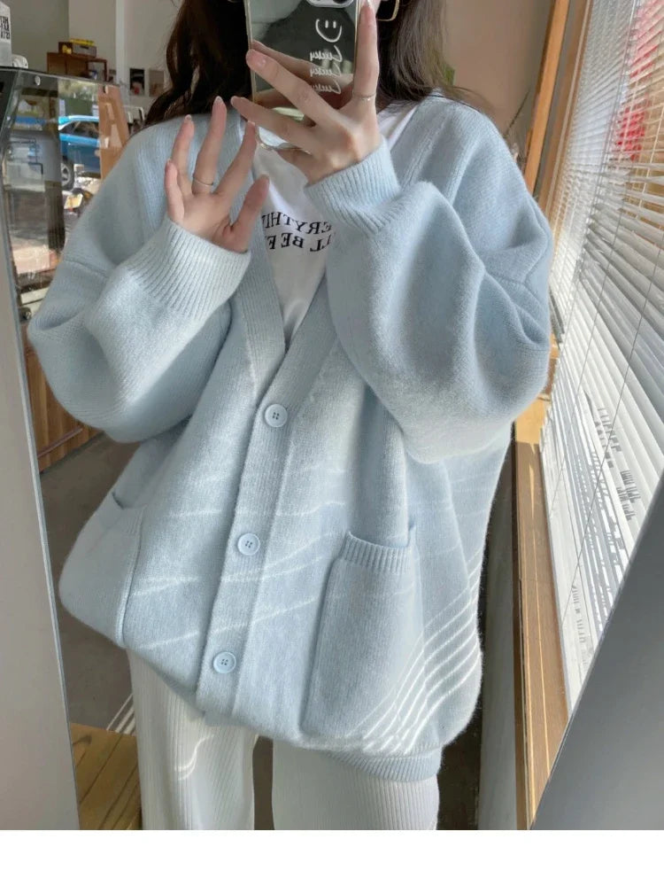 Autumn Winter Sweater Women's Cardigan Knitted Jacket Long Sleeve Top Loose V-neck Solid Korea Fashion Sweaters for Women