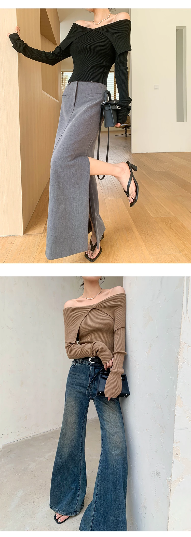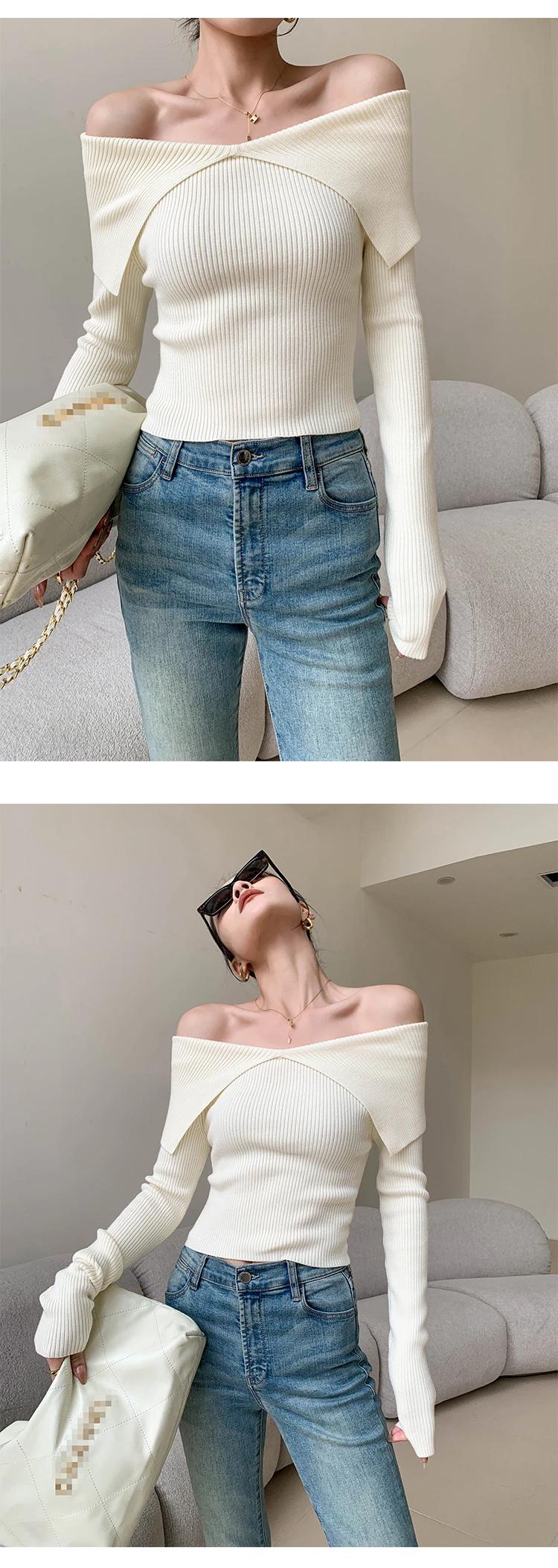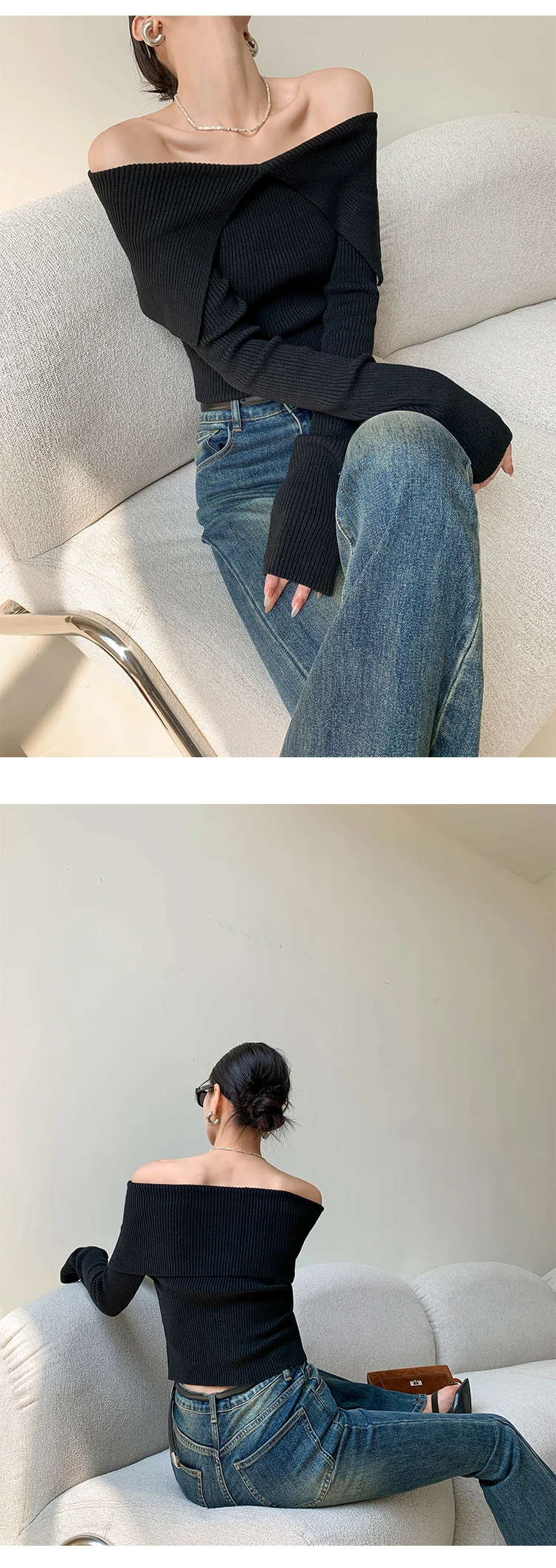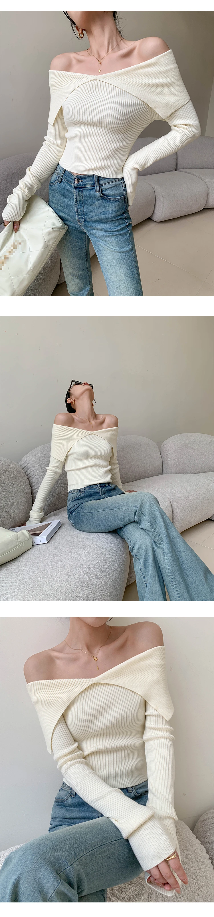 Autumn Winter Women Sweaters Casual Long Sleeve Knitted Pullover Sweater Basic Solid Sexy Off Shoulder Crop Top Fashion Clothes