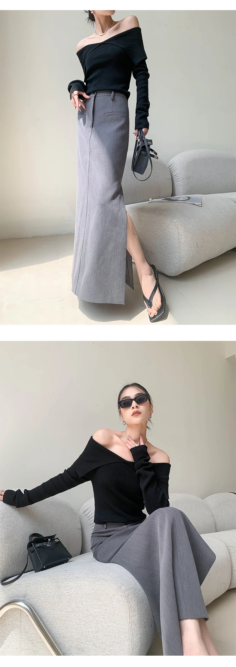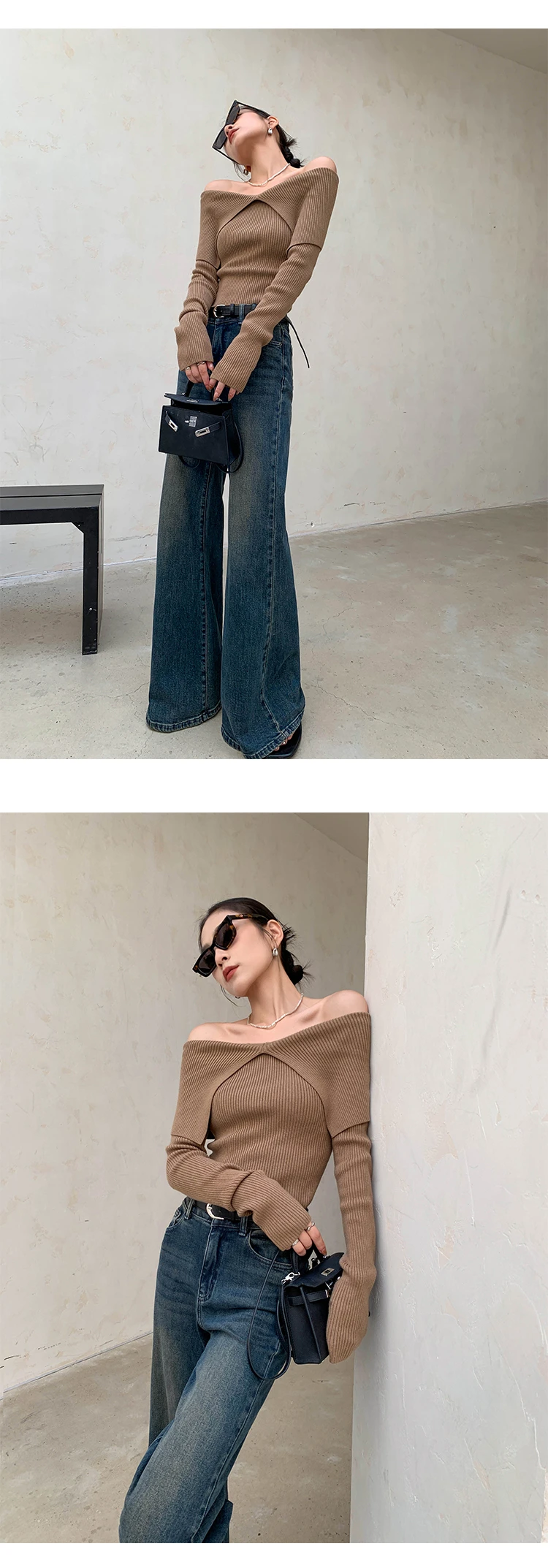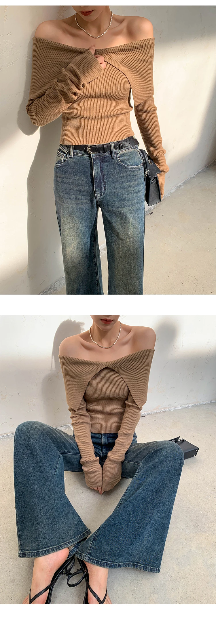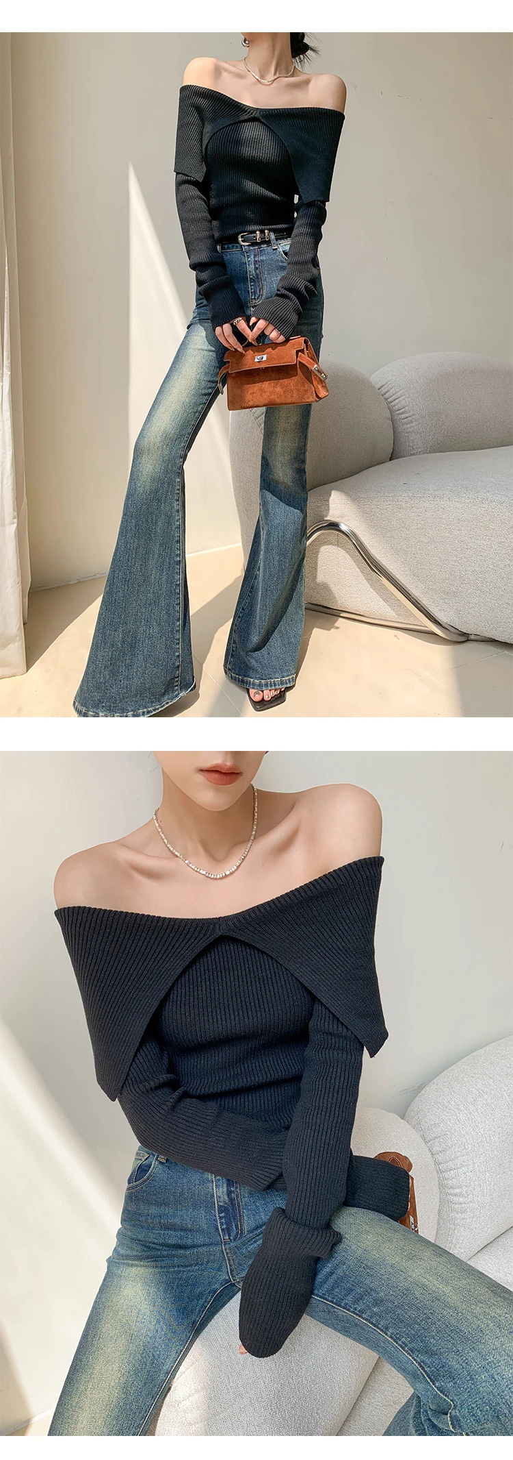 Autumn Winter Women Sweaters Casual Long Sleeve Knitted Pullover Sweater Basic Solid Sexy Off Shoulder Crop Top Fashion Clothes