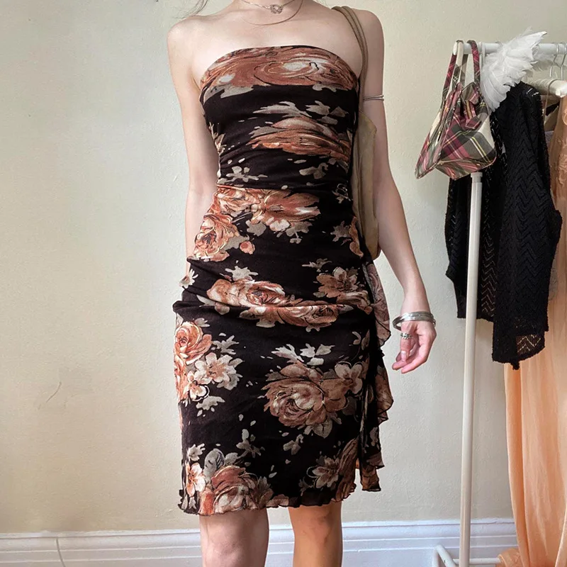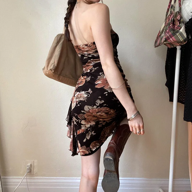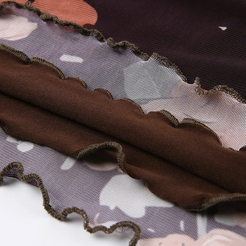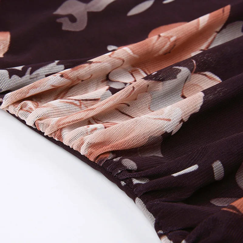 Model Number: Mesh Ruffles Floral Print Mini Dresses