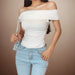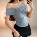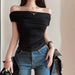 Black Off Shoulder Elegant Short Tops Side Pleated Fashion Slim Sexy Cropped T Shirt Women Summer Y2k Clothing Skinny Top