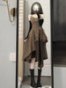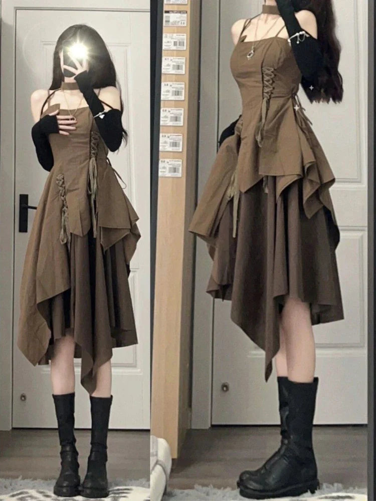 Brown Suspender Dress Women Summer New French Sexy Wear Irregular Splicing Lacing High Waist A-line Camisole Dress
