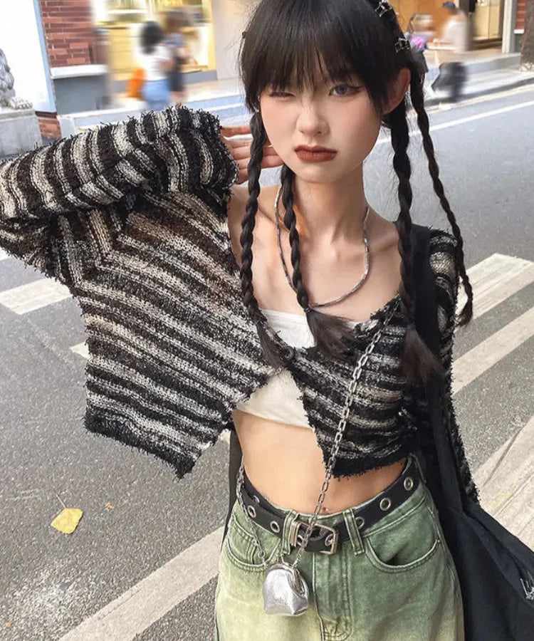 Cardigan Women Slim Popular All-match Leisure V-neck Autumn Lovely Knitting Daily Striped Ladies Elegant Korean Style Sexy New