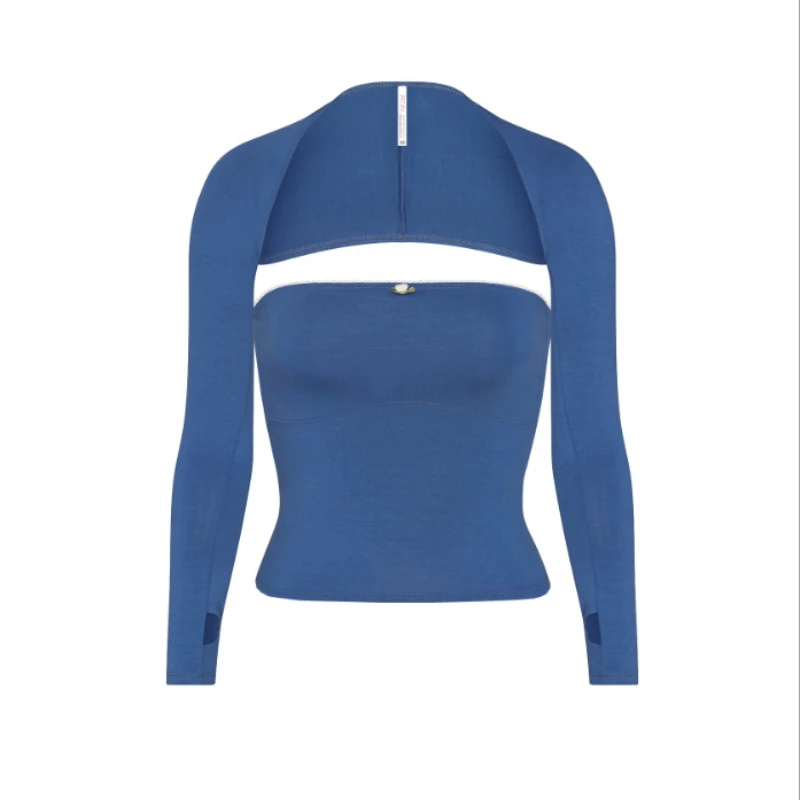 Chic Strapless Tube Tops Y2K Long Sleeve Shrug T Shirt 2000s Retro Fairy Grunge Backless Camis Crop Tops Cute 2 Piece Set