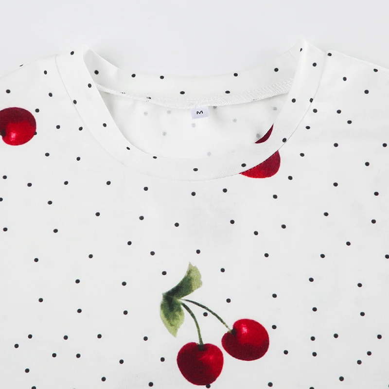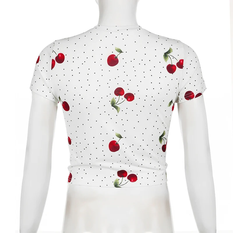 Cute Print Short Sleeve Skinny T-shirt Women Casual O Neck Sweet White Cropped Tops Y2k Aesthetic Harajuku Summer T-shirt