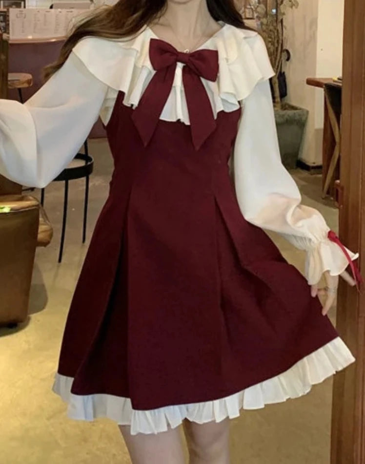 Dresses Women Panelled Cute Elegant Ruched Spring Princess O-neck Retro Trendy Streetwear All-match Holiday Studnet Chic Vestido