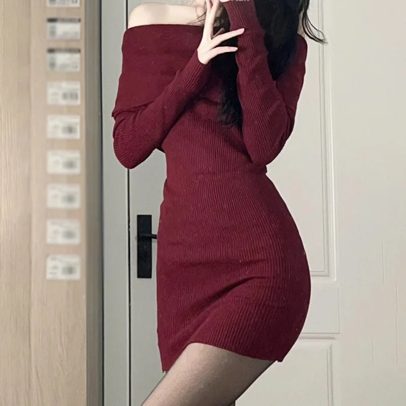 Elegant Beautiful Women's Bodycon Dresses Slim Fitting Solid Color Fashion Autumn Off Shoulder Wrap Dress Dresses Winter