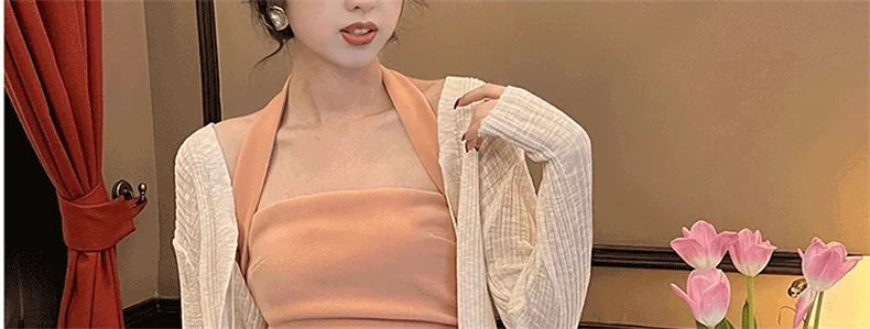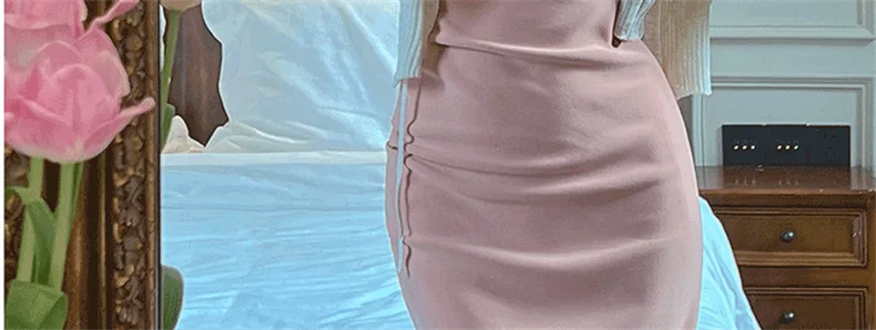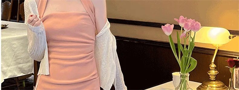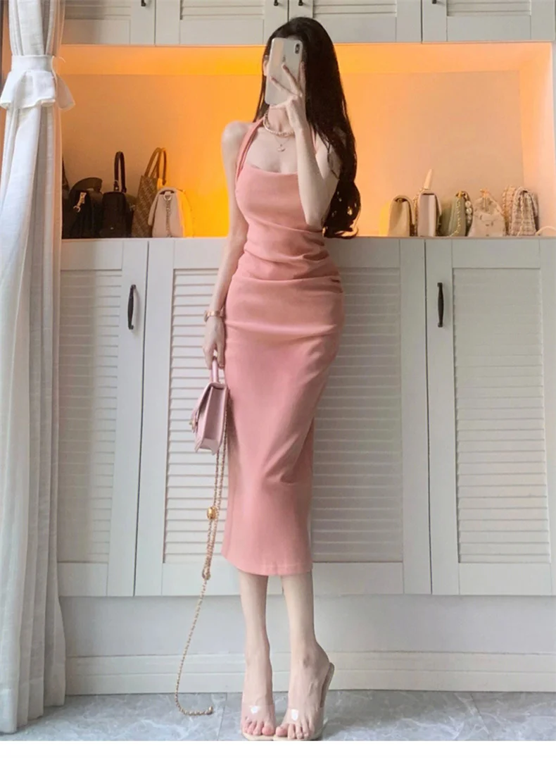 Elegant Senior Pink Halter Spaghetti Straps Dress Women's Summer French Waist-Tight Hip-Wrapped Princess Mid-Length Skirt
