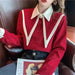 Elegant Vintage Edge Piping Peaked Collar Shirts Women Spring Loose Puff Sleeve Blouses Simple Single Breasted Tops