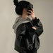 Fashion Hooded Loose Leather Jackets Women Fashion Faux Leather Coats Spring Autumn Korean PU Jackets