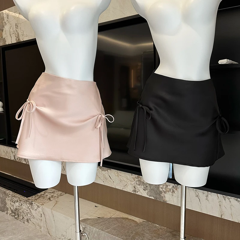 Fashion Satin Mini Skirt Women Cozy Bottoms High Waist Sexy Hot Girl Korean A-Line Skirt Bow Streetwear Clothes American Retro