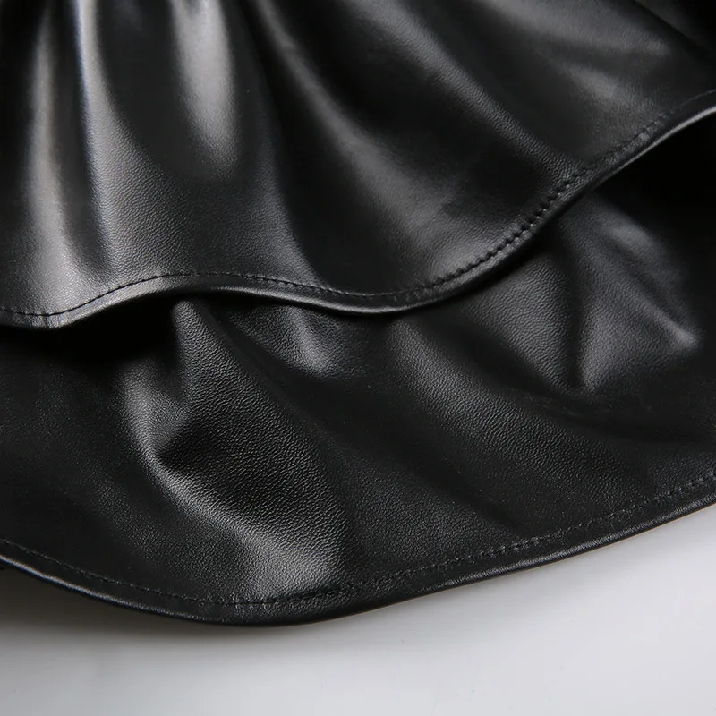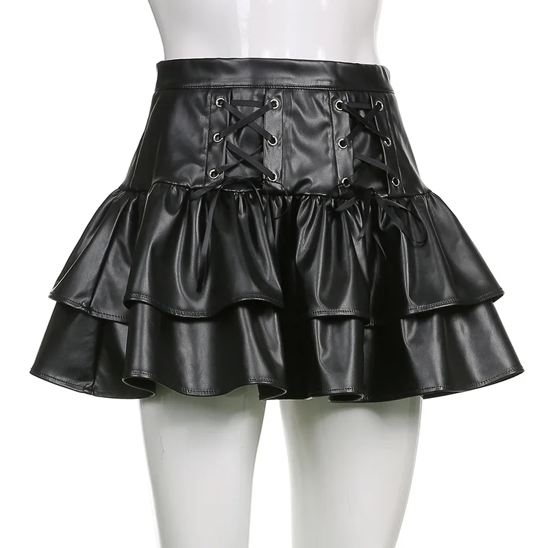 Goth Punk PU Leather Mini Skirt Women Hight Waist Lace Up Bandage Black Pleated Skirt Streetwear Girls Lolita Skirt