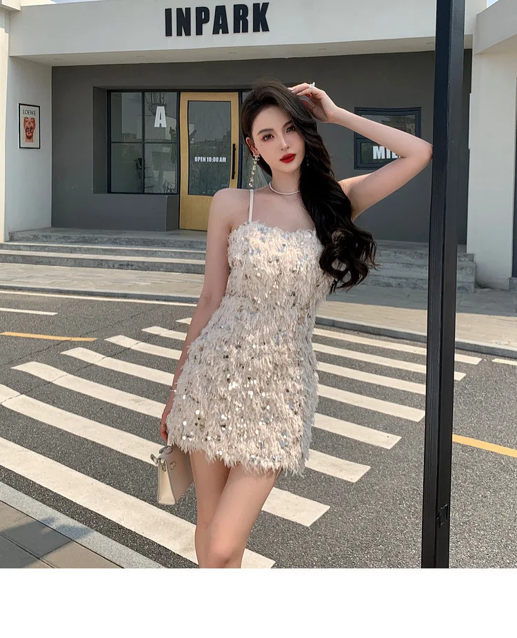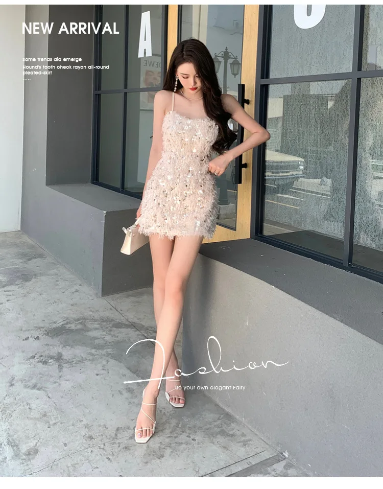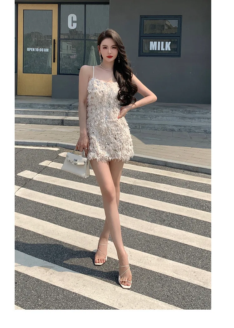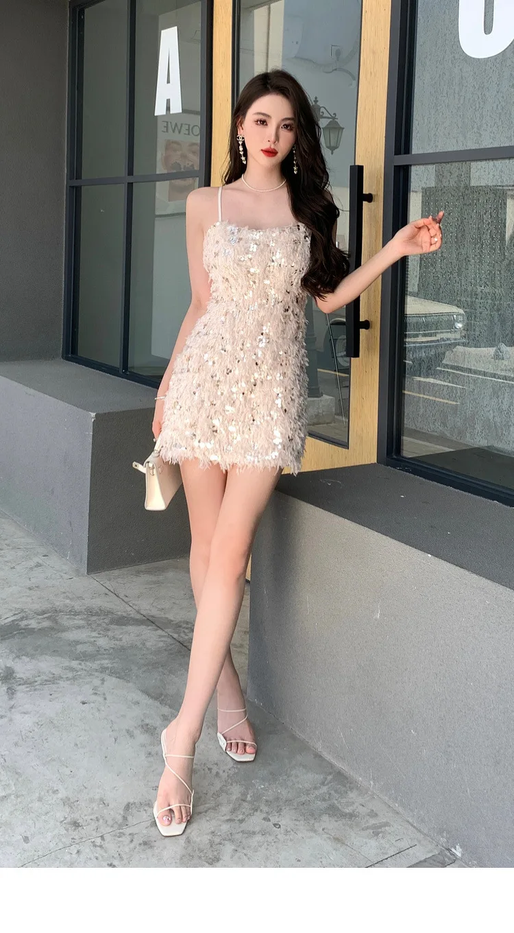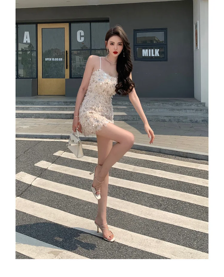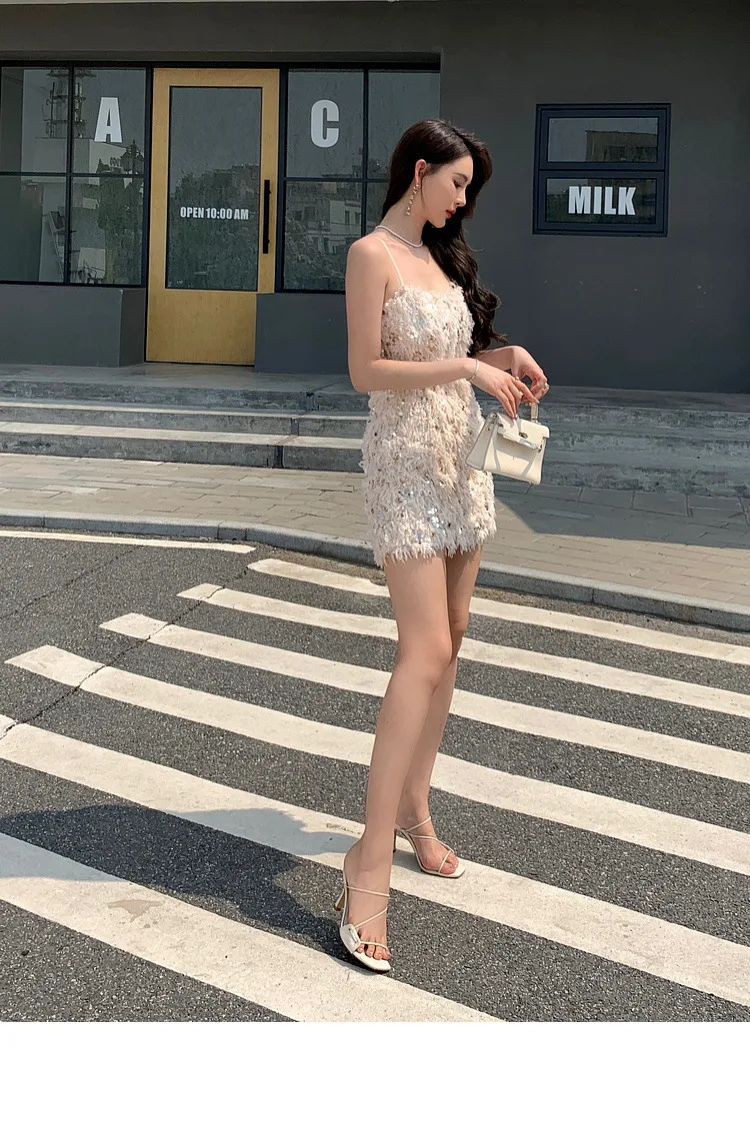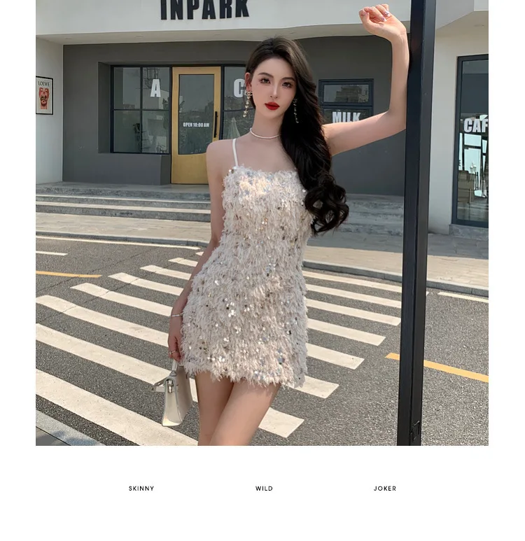 High Quality Luxury Brand's New Summer Beaded Short Skirt Feels Slim and Pure Sweet and Spicy Sexy Suspender Dress Streetwear