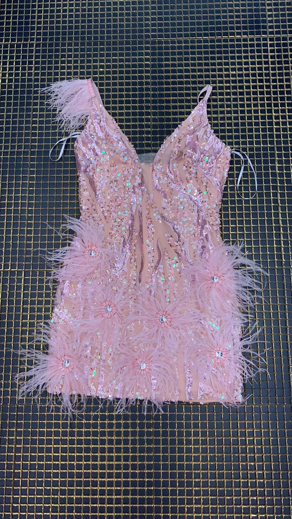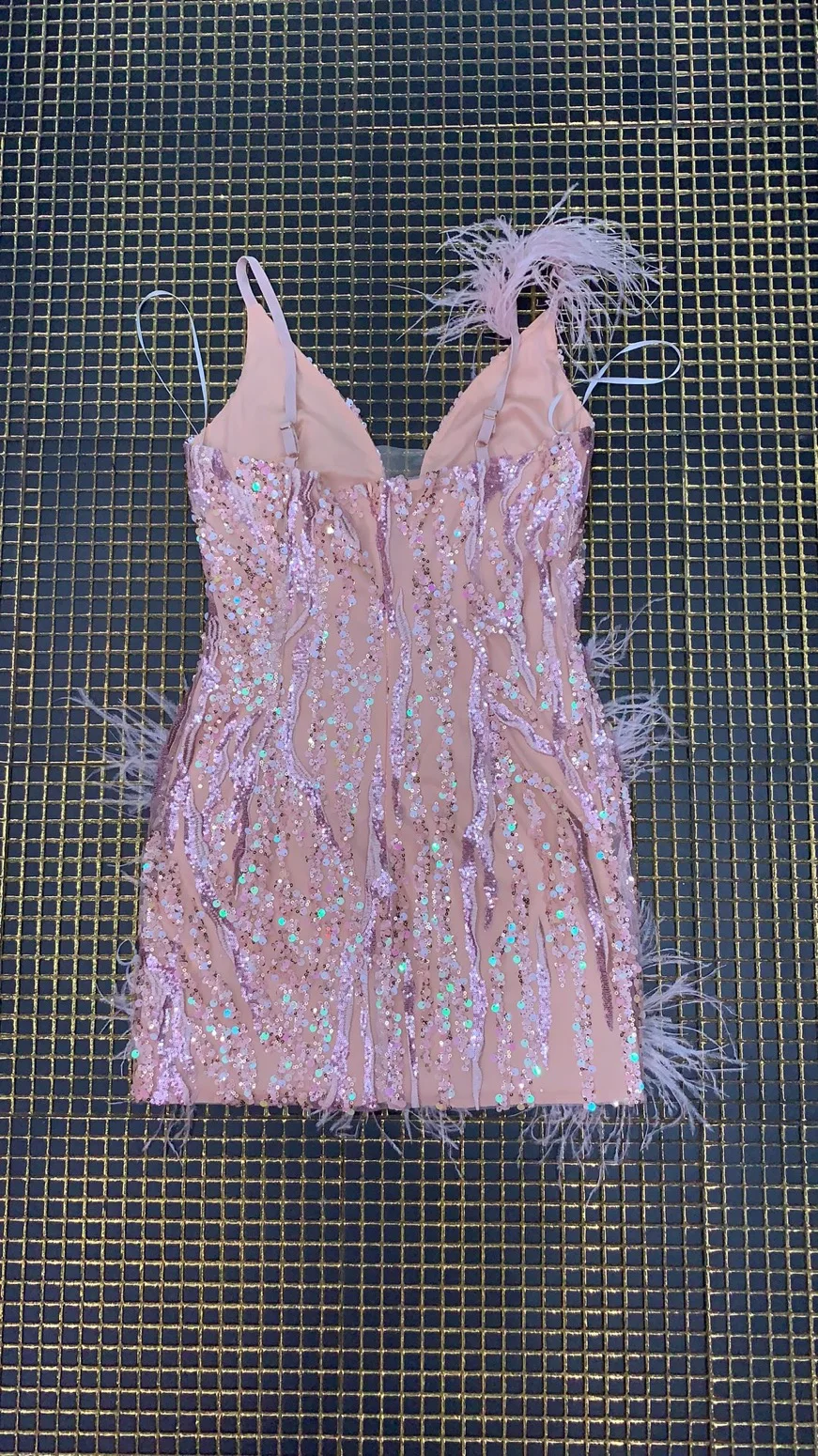 Pink Mini Feather V-neck Fashion Bodycon Dress Night Club Party Bodycon Dress New Years Eve Outfits