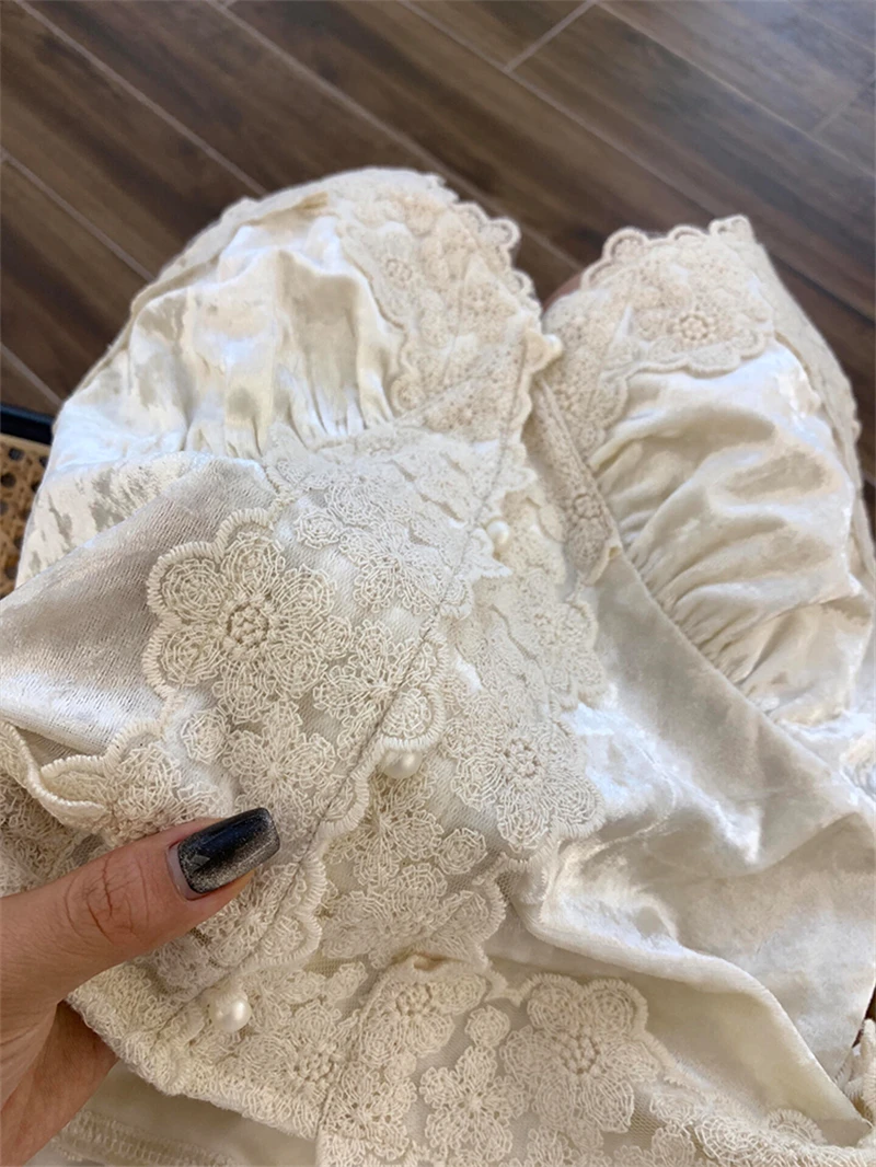 High Street Simple Tank Top Vintage Spring Summer Beige Camisole Pearl Fashion Off Shoulder Casual Lace Vest Coquette Mori Girl