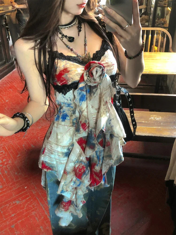 Hnewly 2000s Vintage Y2k Blouse Women Casual Sleeveless Elegant Retro Camisole Female Sexy Irregular Shirts Design Fashion Summer Vest