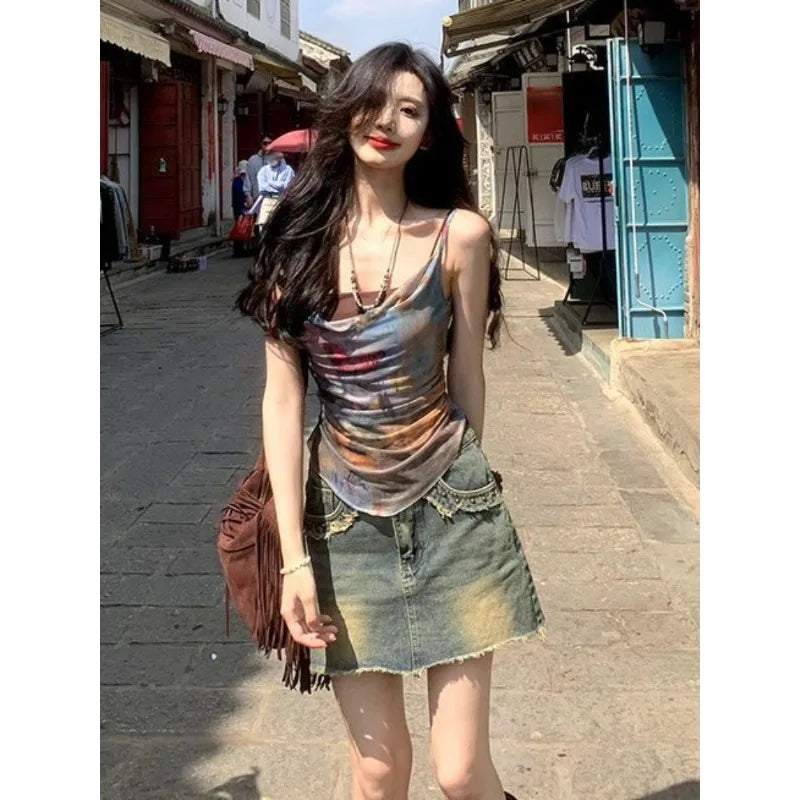 Hnewly 2000s Vintage Y2k Crop Top Women Casual Print Camisole Shirts Sexy Bodycon Slim Fit Outwear Fashion Chic Tank Top Vest Beach