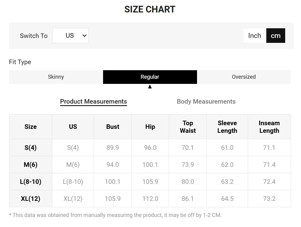 Note: There might be 2-3% difference according to manual measurement. Please check the measurement chart carefully before you buy the item. +Please note that slight color difference should be acceptable due to the light and screen.