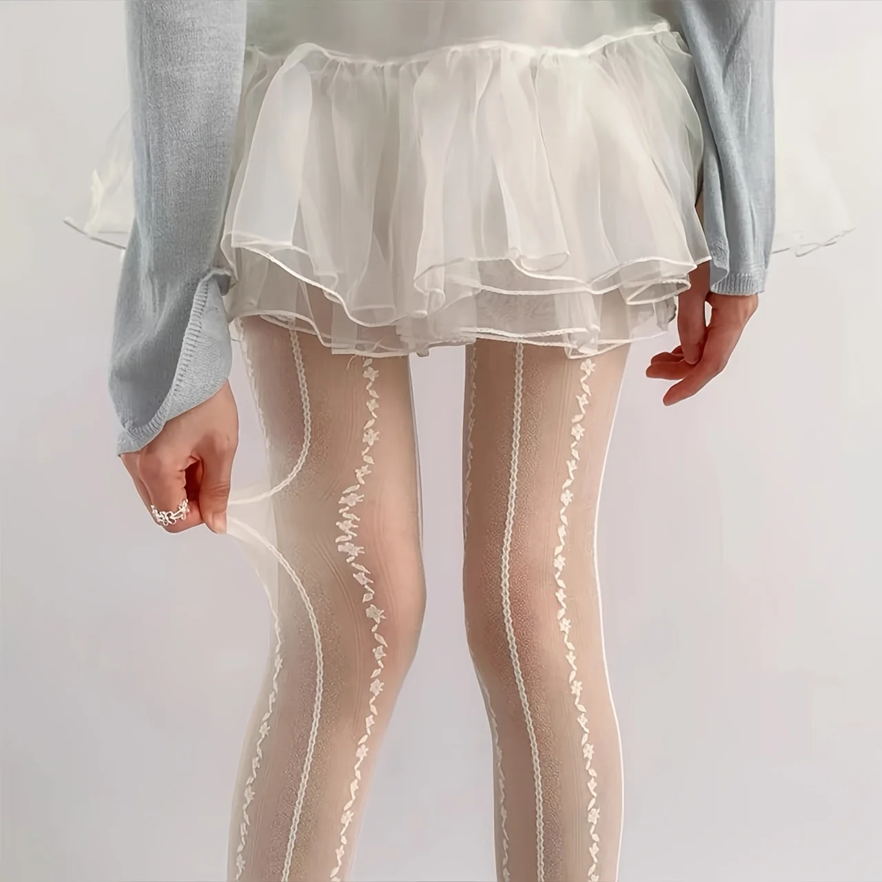 Hnewly A pair of retro-style striped mesh tights, fashion stockings, women's fashion socks