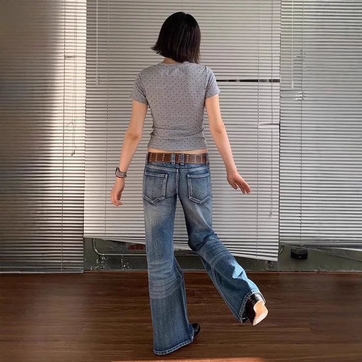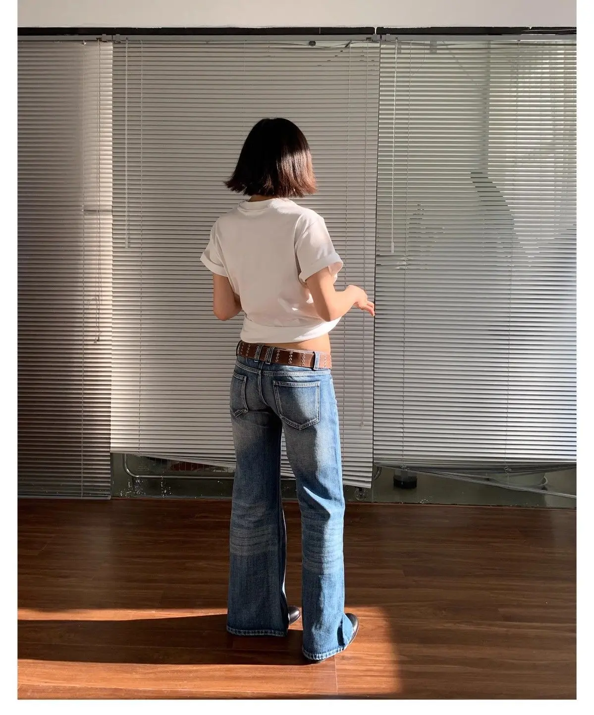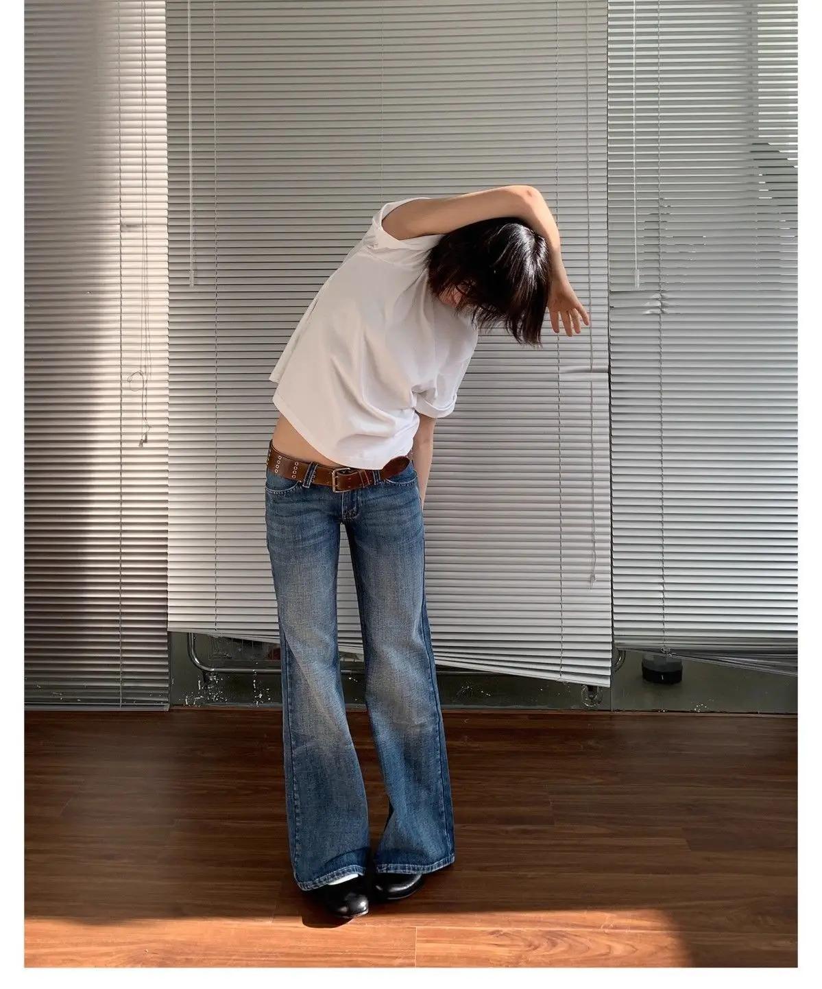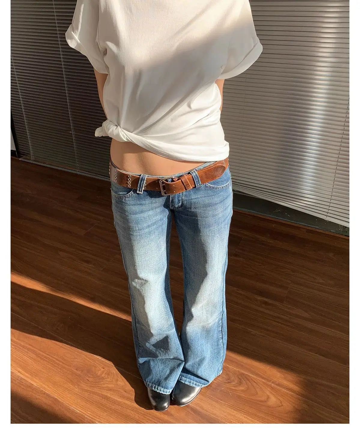 Hnewly American Retro Street Hippop Denim Jeans Low Waist Slim Fit Boot-cut Trousers Casual All-match Simple Y2k Pants Cowboy 2000s