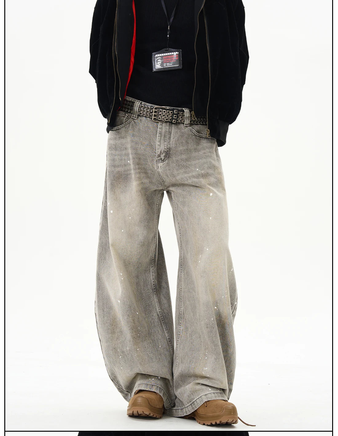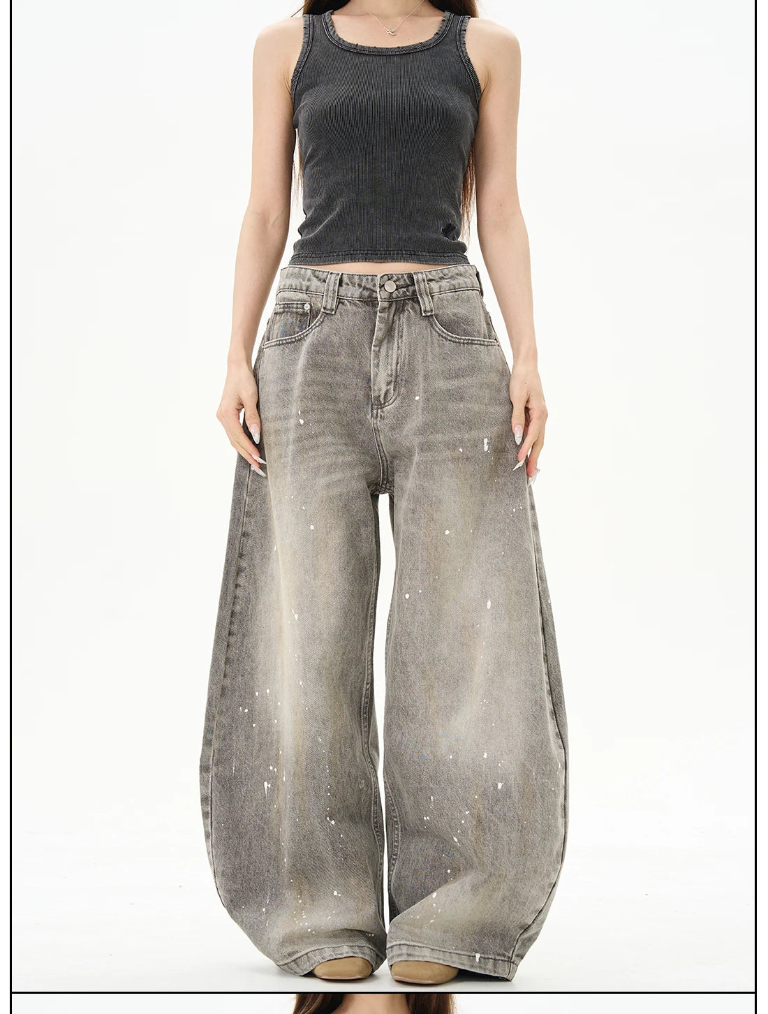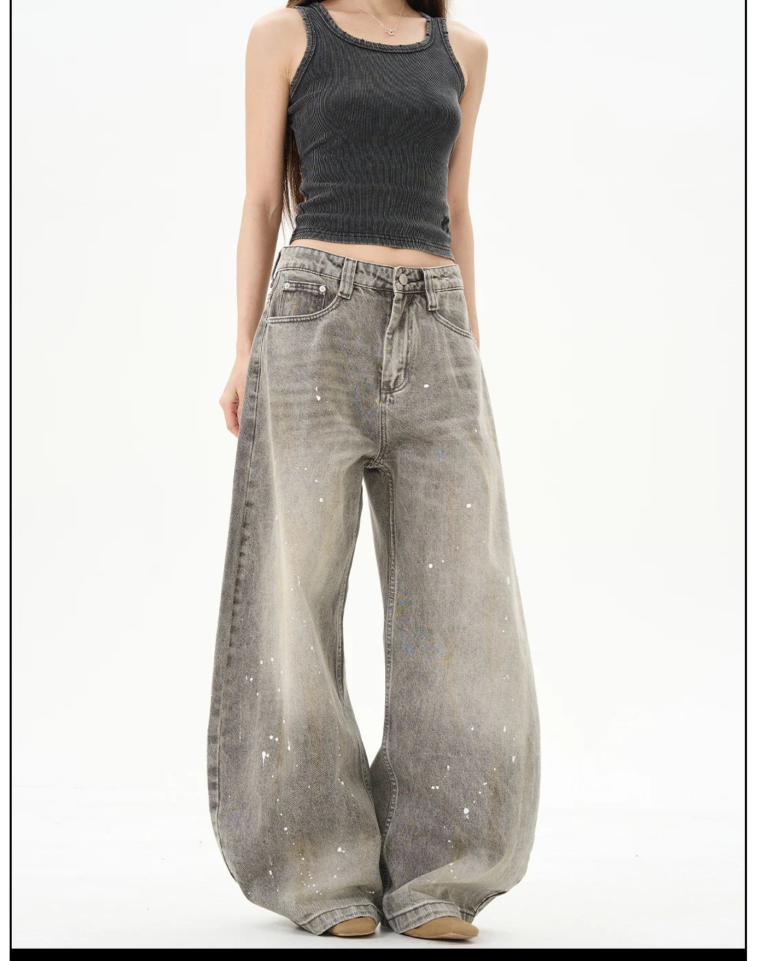 Hnewly American Vintage Splatter Paint Gray Baggy Jeans for Women High Waisted Wide Leg Y2k Loose Streetwear Jean Denim Pants