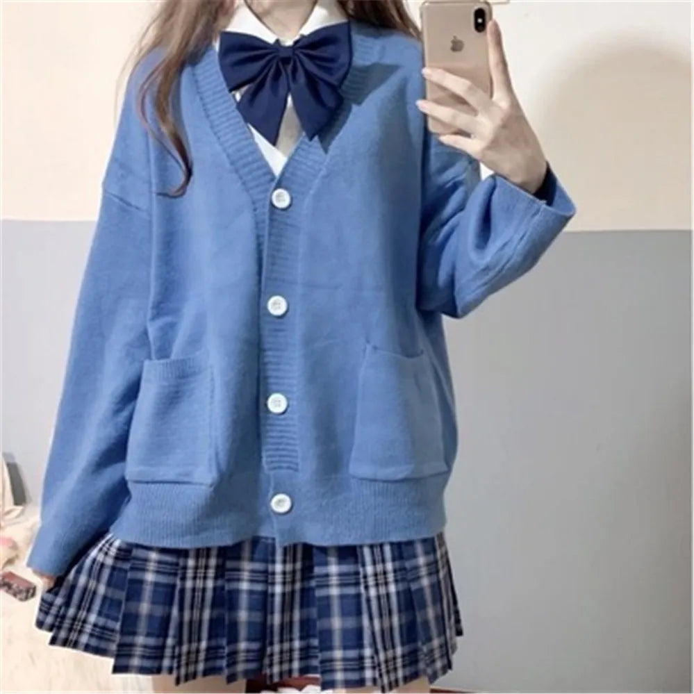 Hnewly Autumn Winter V-neck cotton knitted sweater uniform cardigan multicolor women's wear Japanese style sweater tops