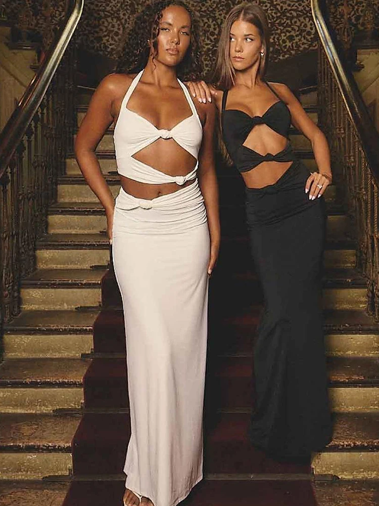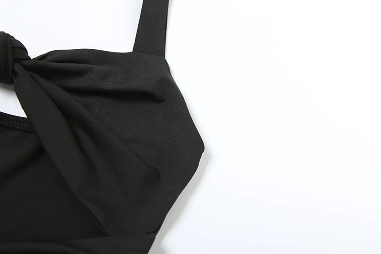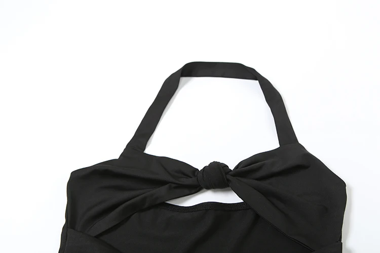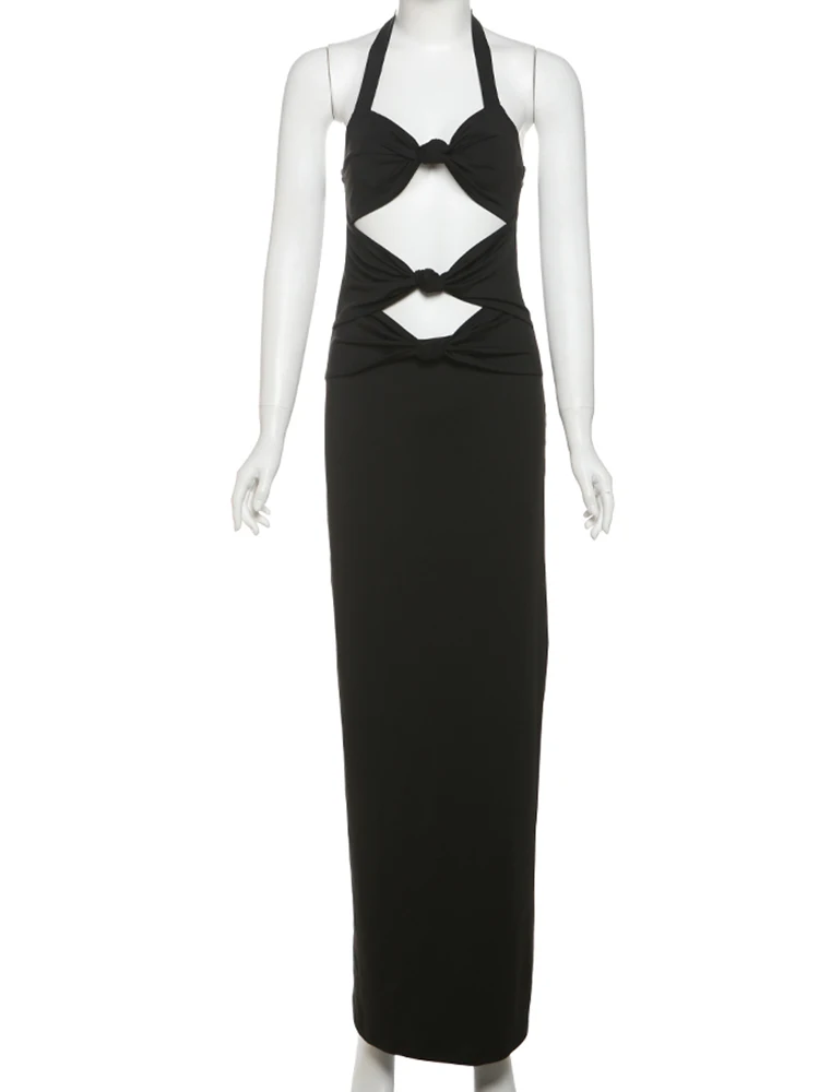 Hnewly Backless Hollow Dress Women Pleated Sexy Solid Slim Halter Knot Sleeveless Elegant Midnight Clubwear Party Vestidos