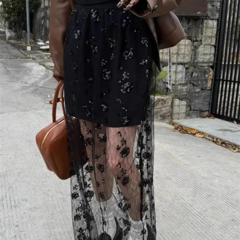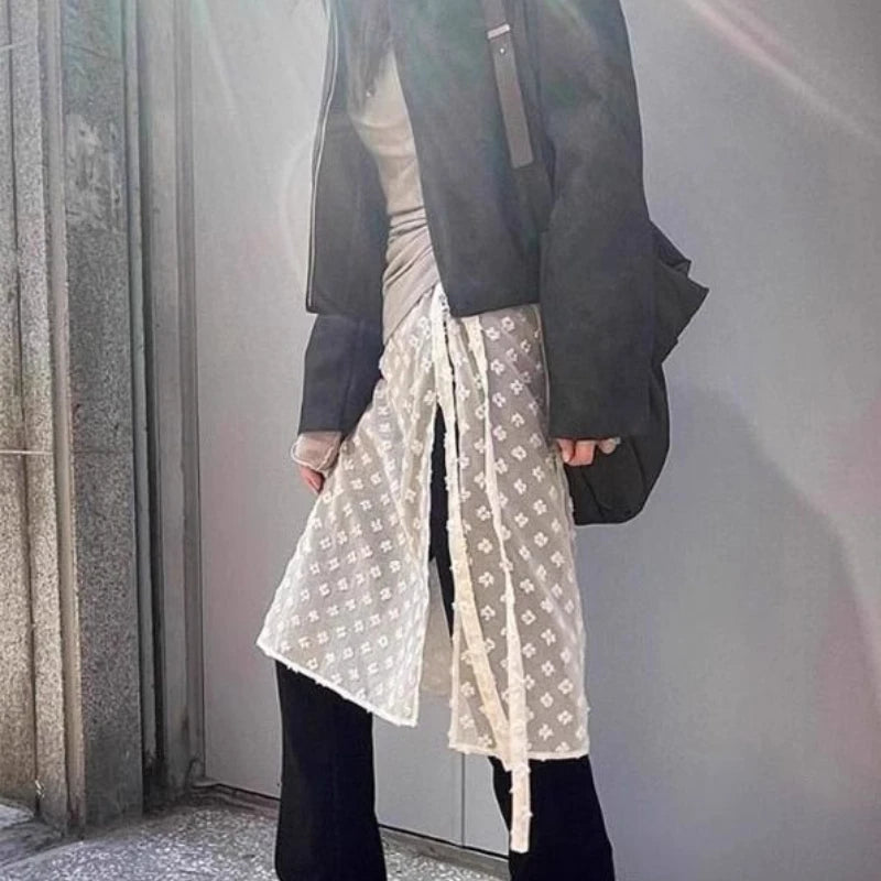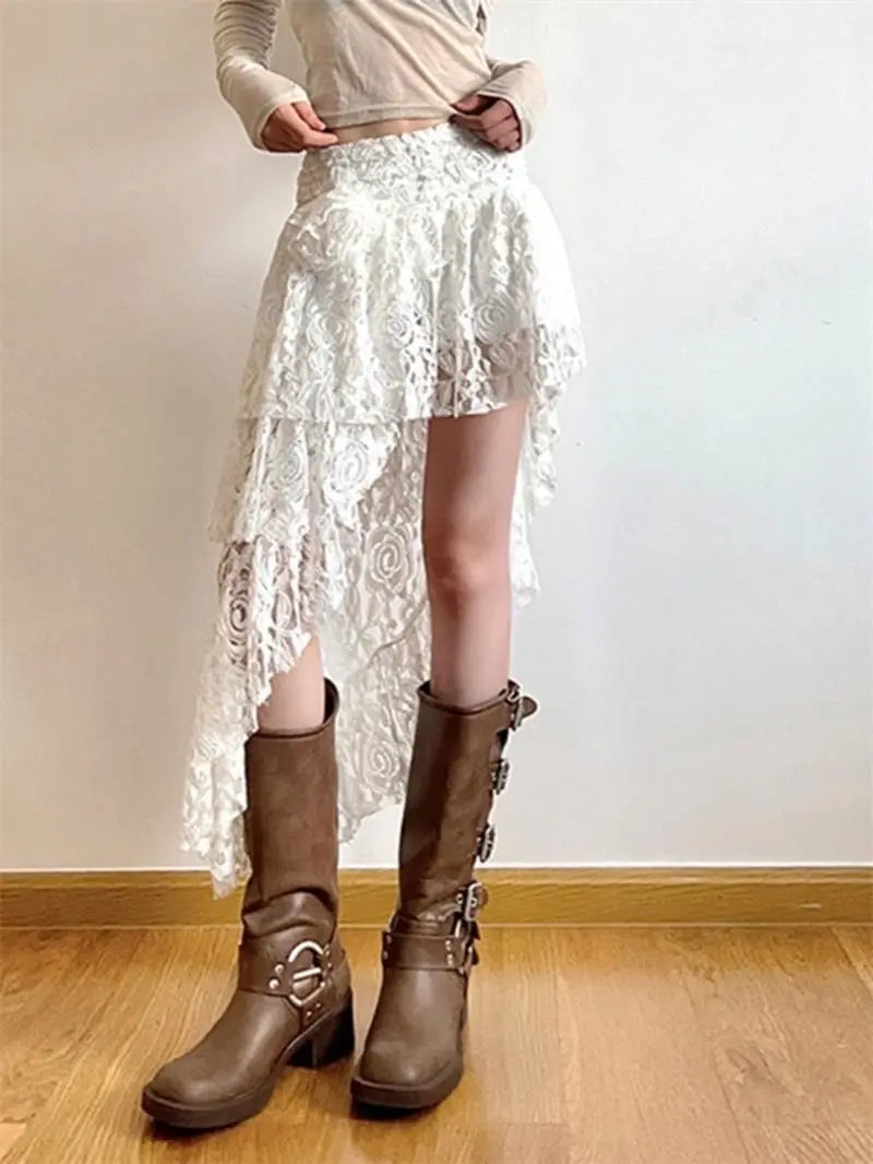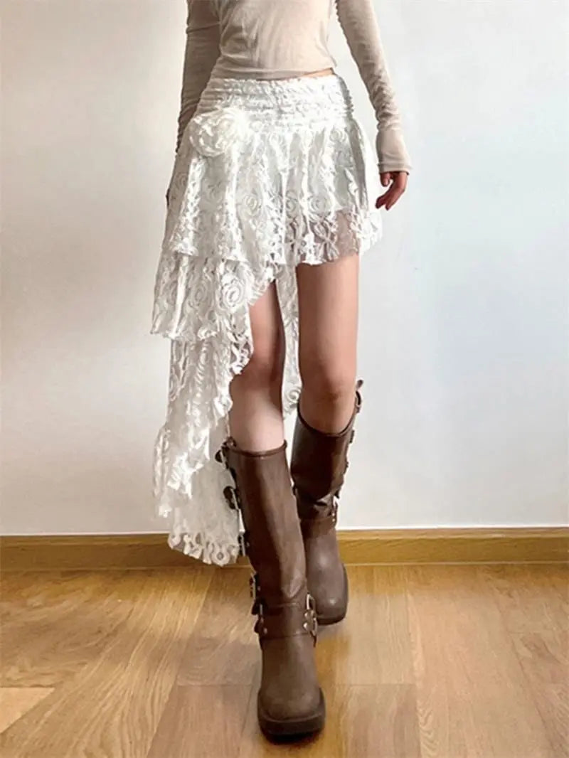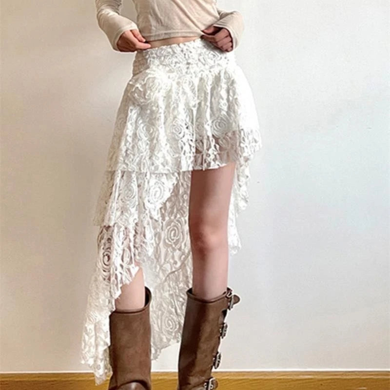 Hnewly Boho Elegant Lace Skirt Women Tulle Vintage White Skirts Irregular Layered Street Summer Short Mid Skirt Korean Fashion