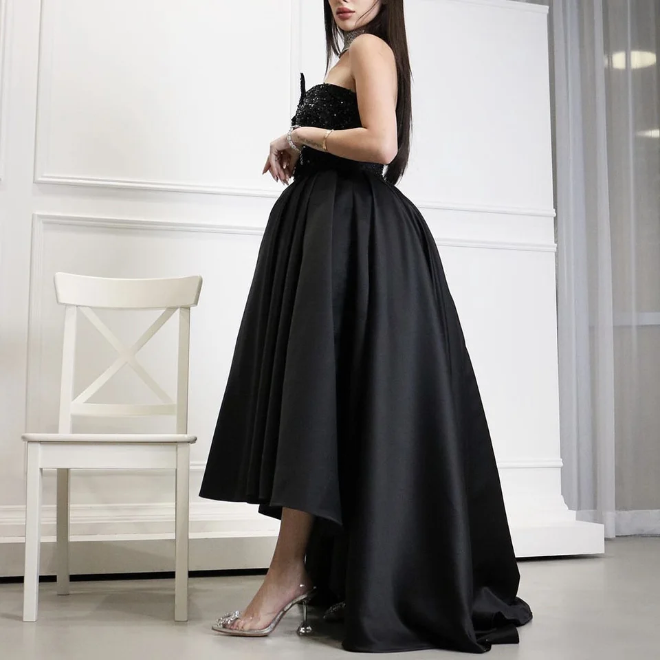 Hnewly Charming Black Pearls Strapless Sequin Sleeveless Evening Dress A-Line Sweep Train Custom Made Stain Zipper Prom Dress formal dress