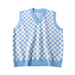 Hnewly Checkered Sweater Vest Women Blue and White Checkerboard Sleeveless Knit Top Teen-girl Y2K Preppy Style Outfit