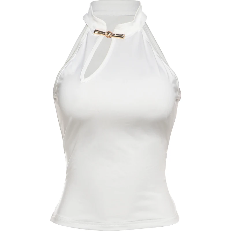 Hnewly Cheongsam Buckle Tank Tops Women Y2K Summer Trend Basic Classic Hollow Solid Simple Street Stretch Daily Chic Vest