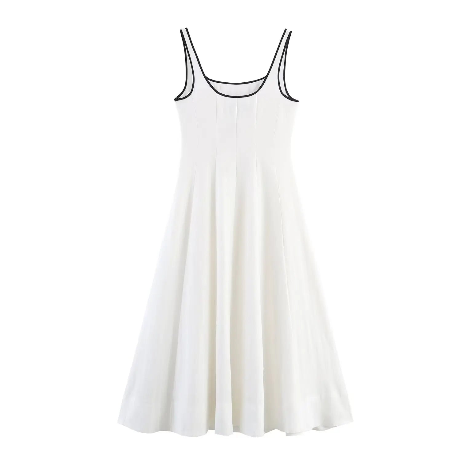 Hnewly Contrast Edge Midi Dress Summer New Arrivals Women's Casual Loose Suspender Dress