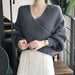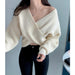 Hnewly Criss Cross Wrap Sweater for Women Rib Knit Long Sleeve V-Neck Crossover Pullover Crop Jumper Autumn Winter Elegant Chic Outfit