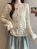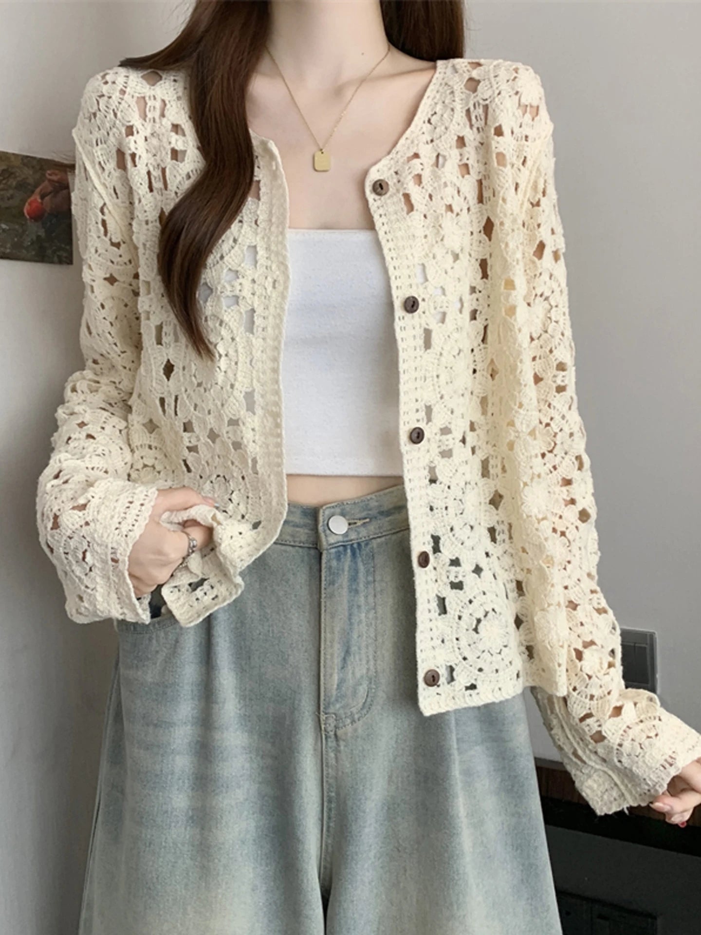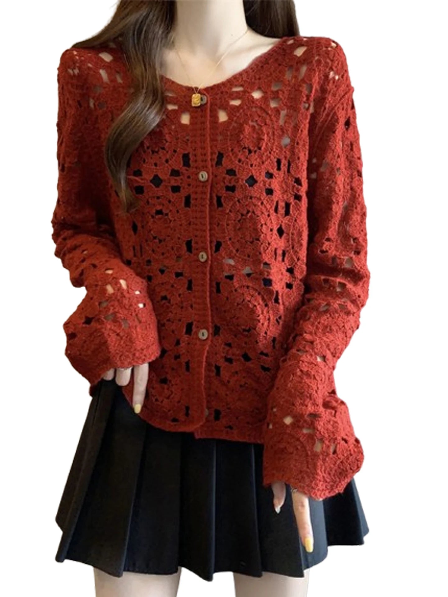 Hnewly Crochet Cardigan for Women Sheer Openwork Knitted Top Button Down Openknit Blouse Boho Chic Vacation Outfit