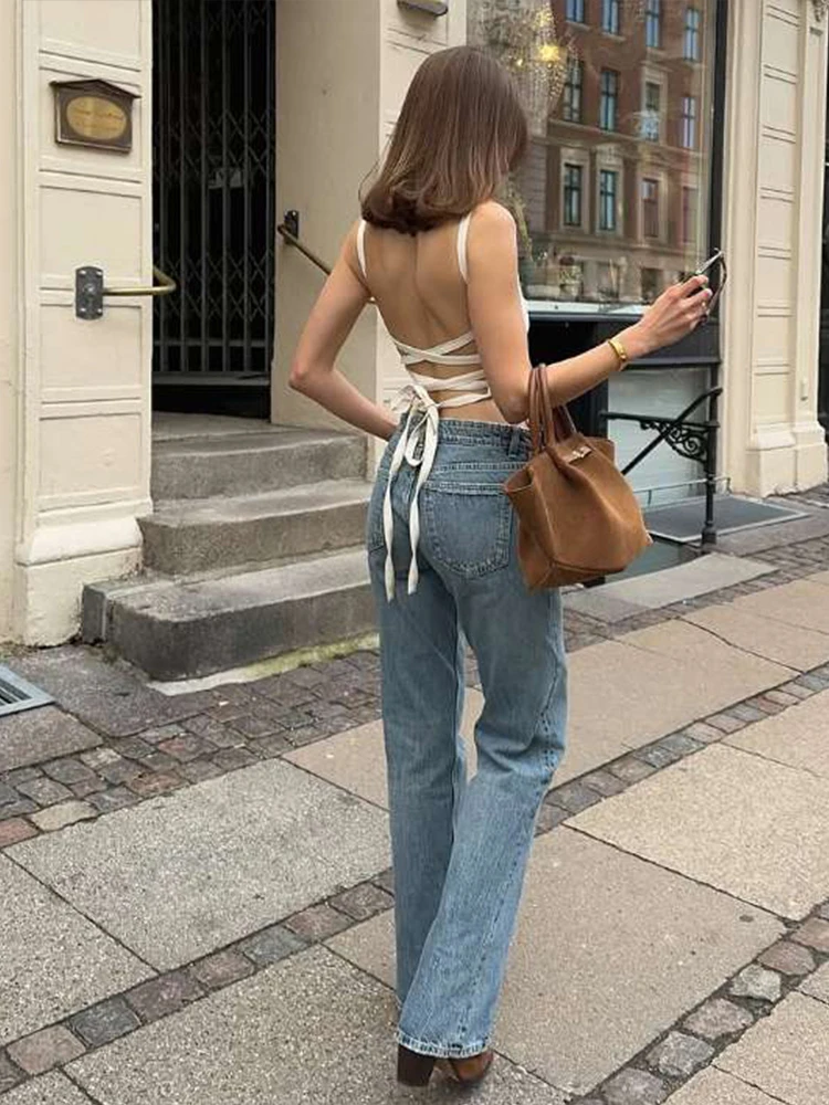 Hnewly Cross Backless Camisole Women Square Collar Irregular Hollow Out Sexy Lace-Up Hot Girl Street Simple Fashion Outfits