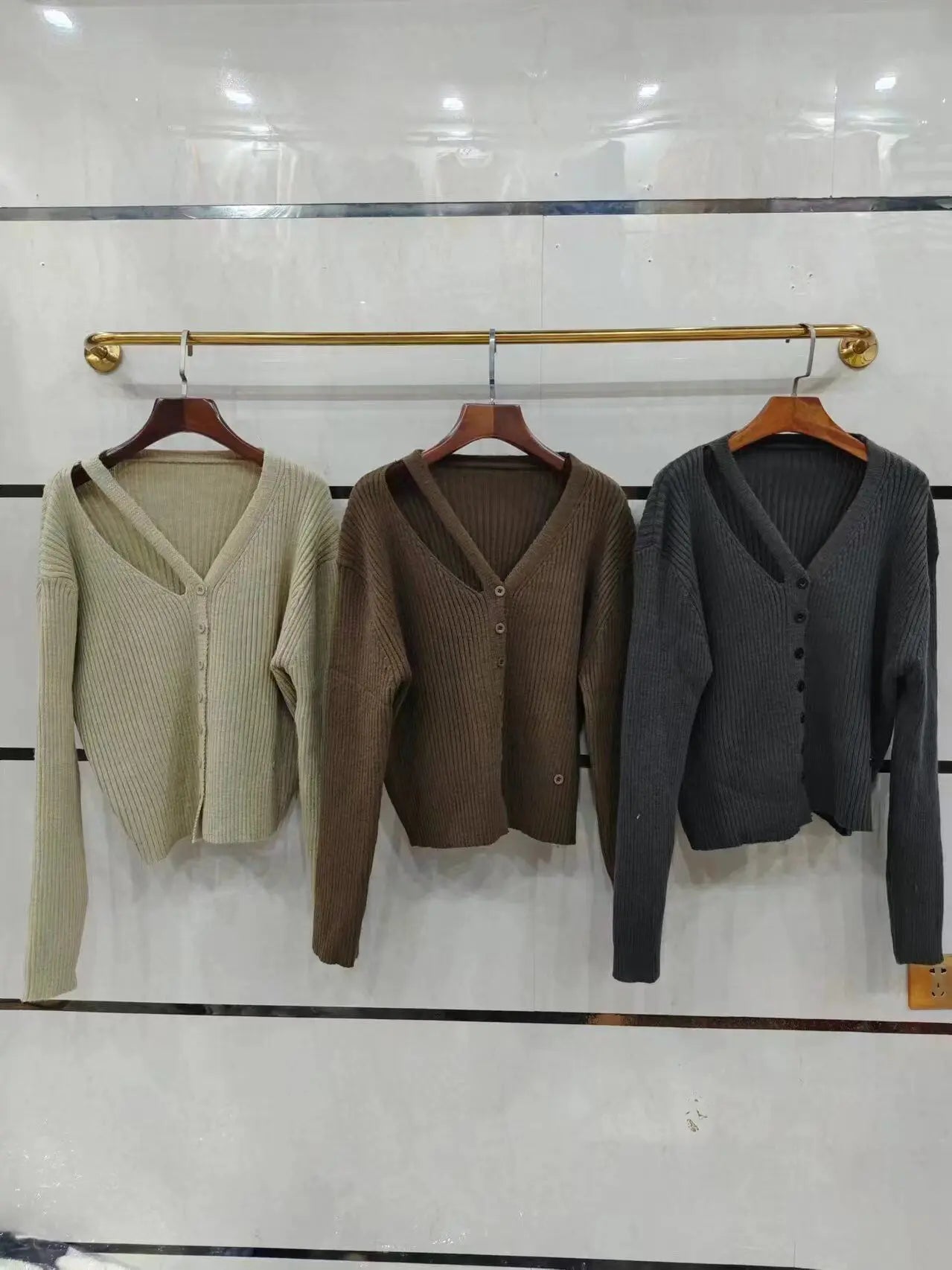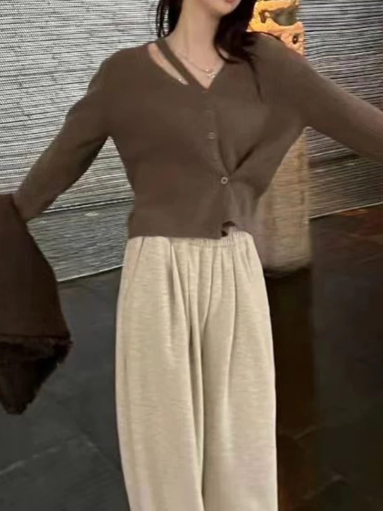 Hnewly Cut Out Cardigan for Women Soft Knit Long Sleeve Button Down Rib-Knit Sweater Jacket Teen-girl Autumn Winter Y2K Outfit
