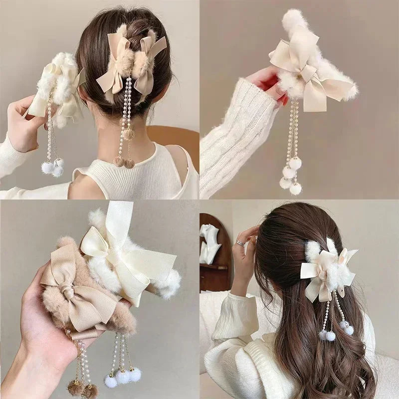 Plush bow tassel pendant hair clips for your party, festival or daily life