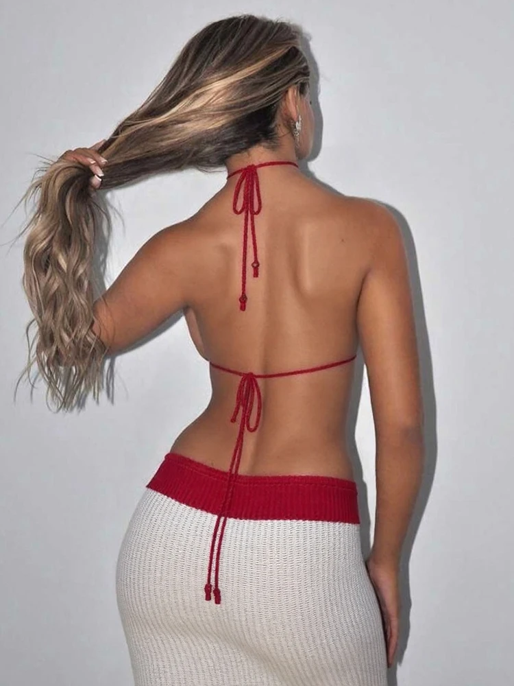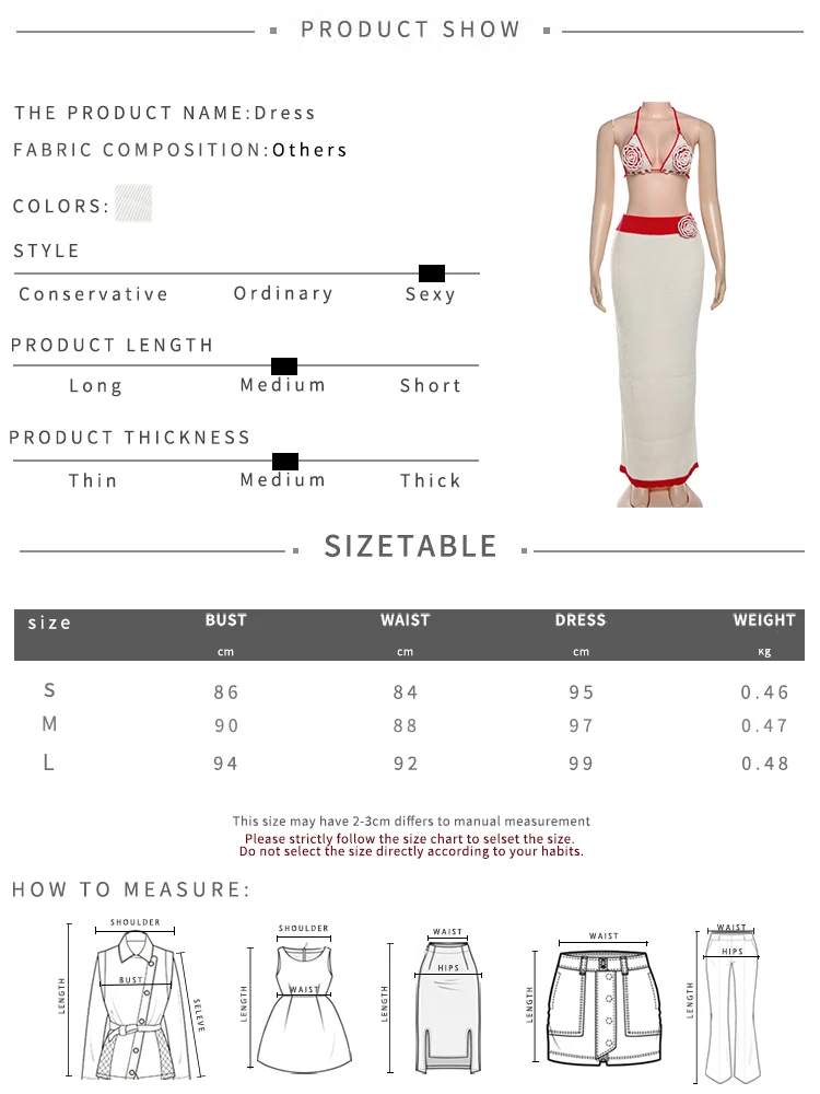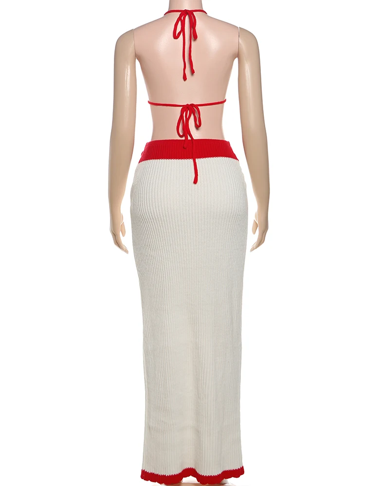 Hnewly Cutenew Appliques Embroidery Women 2 Piece Set Summer Knitted Vacation Outfits Sexy Halter Bandage Camis+Panelled Maxi Skirts