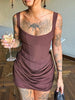 Hnewly Cutenew Christmas Ruched Dress Women Elegant Low Chest Sleeveless Patchwork Peach Hip Birthday Party Dating Skinny Clubwear