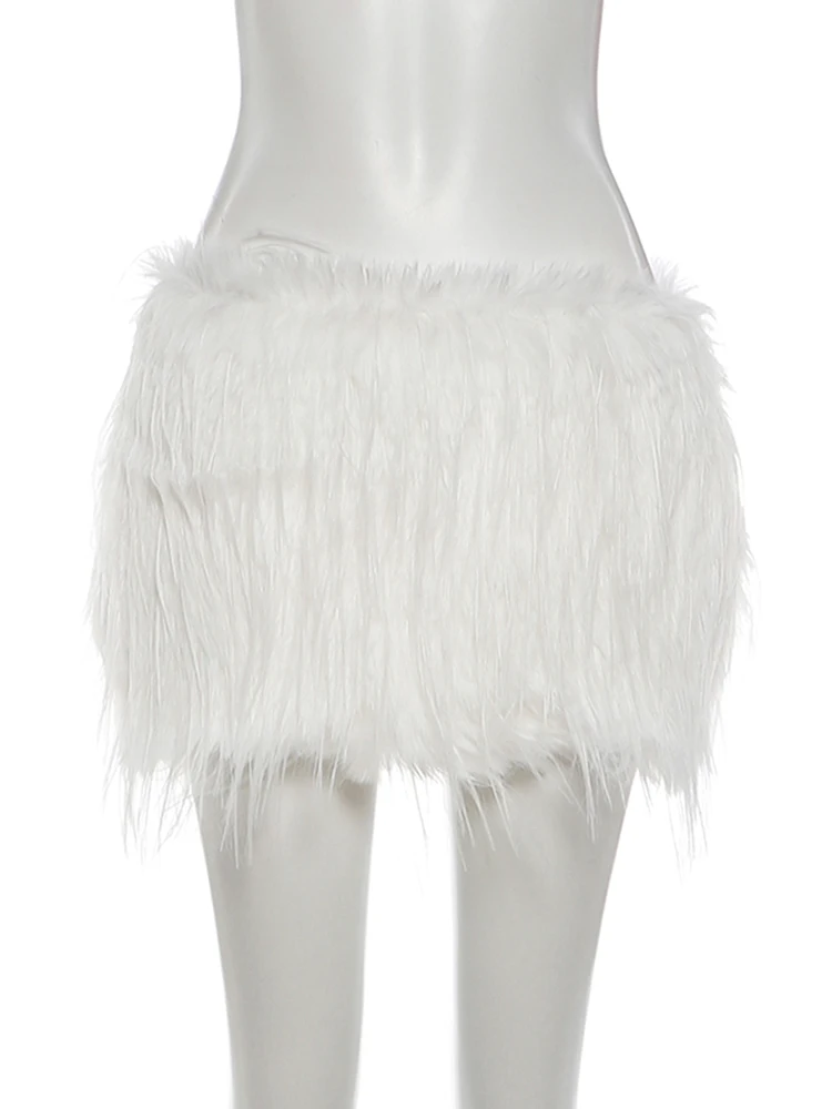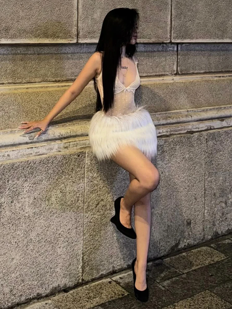 Hnewly Cutenew Hottie See Through 2 Piece Set Women Sexy Jacquard V-Neck Sleeveless Tank Top+Furry Tassel Skirt Trend Party Clubwear