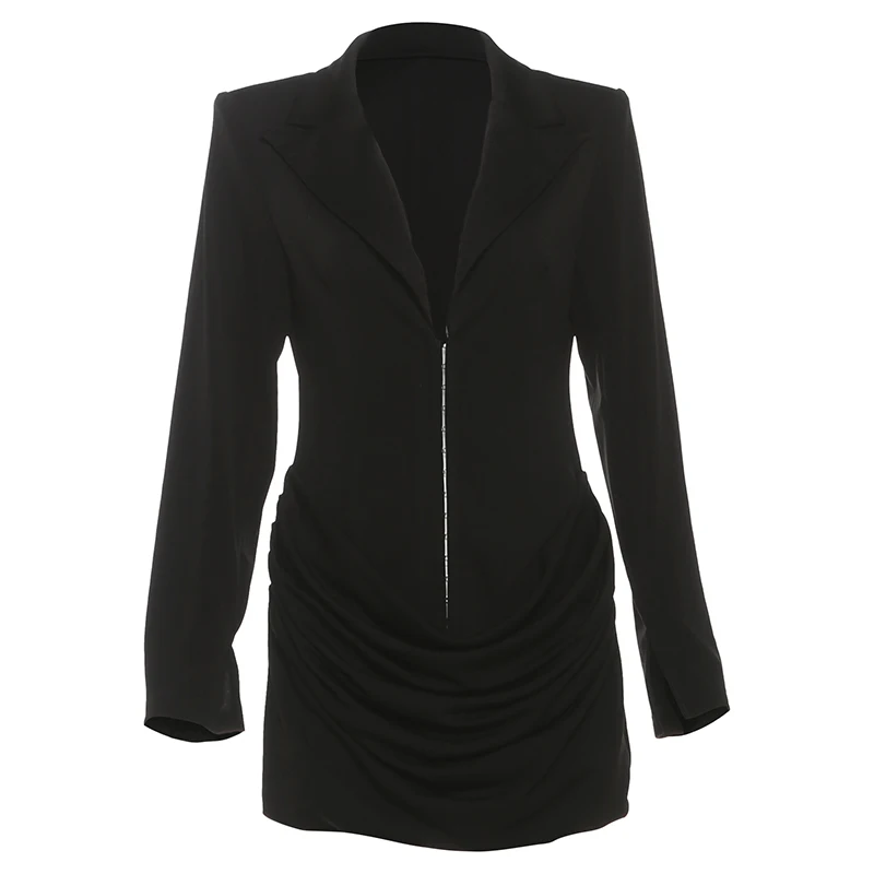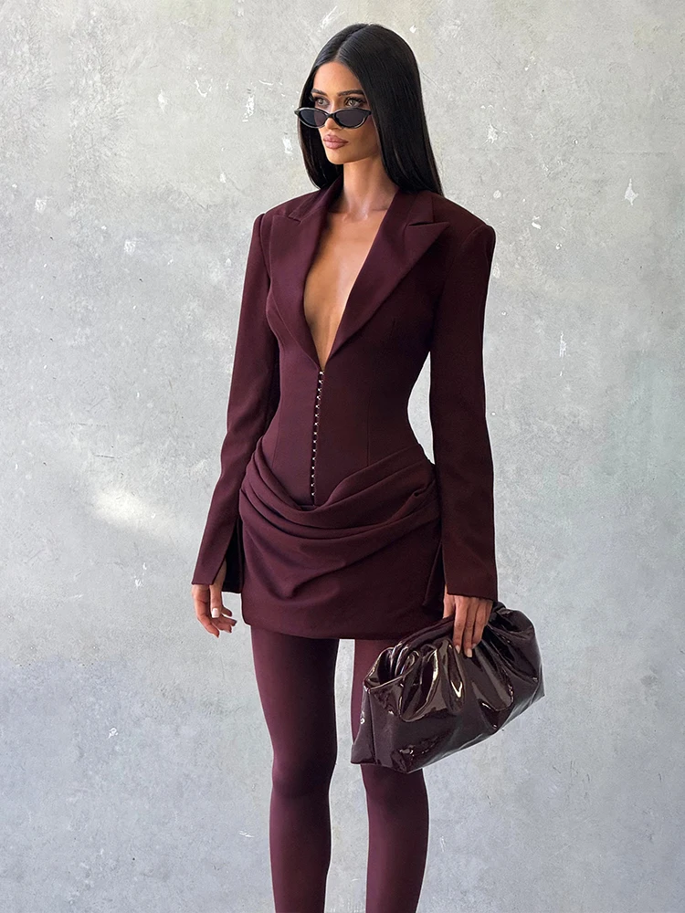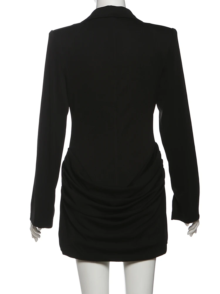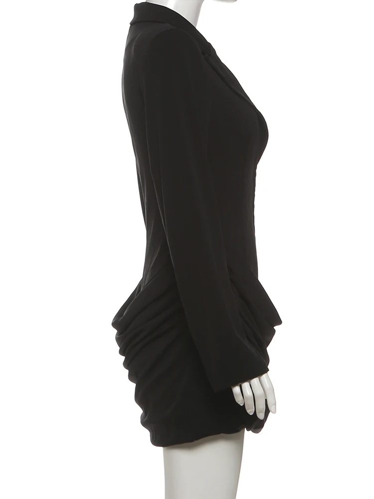 Hnewly Cutenew Single-Breasted Hidden Buttons Dress Women Sexy Elegant v-Neck Full Sleeve Office Folds Fashion Commute Mini Bodycon